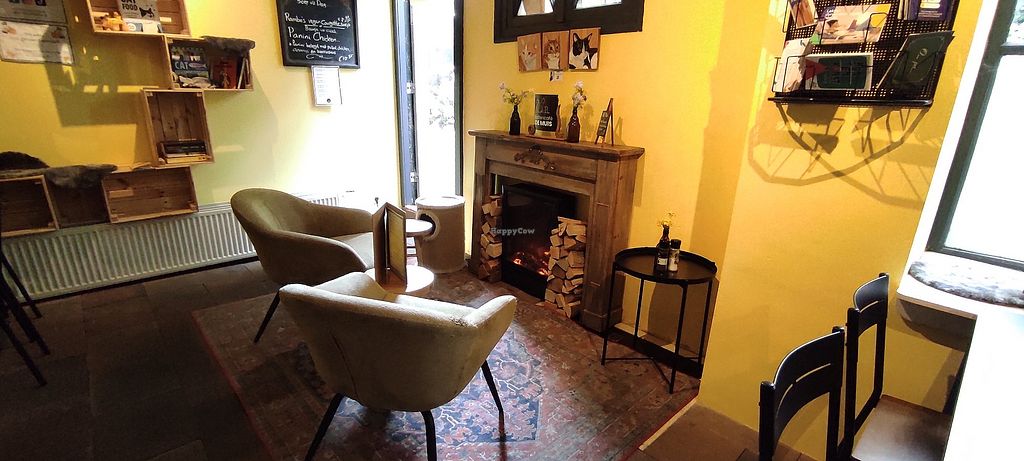Cons: Only 1 vegan sweets option - unlabeled, Cappuccino wasn't that good, Lacking house rules for the cats peace of mind.