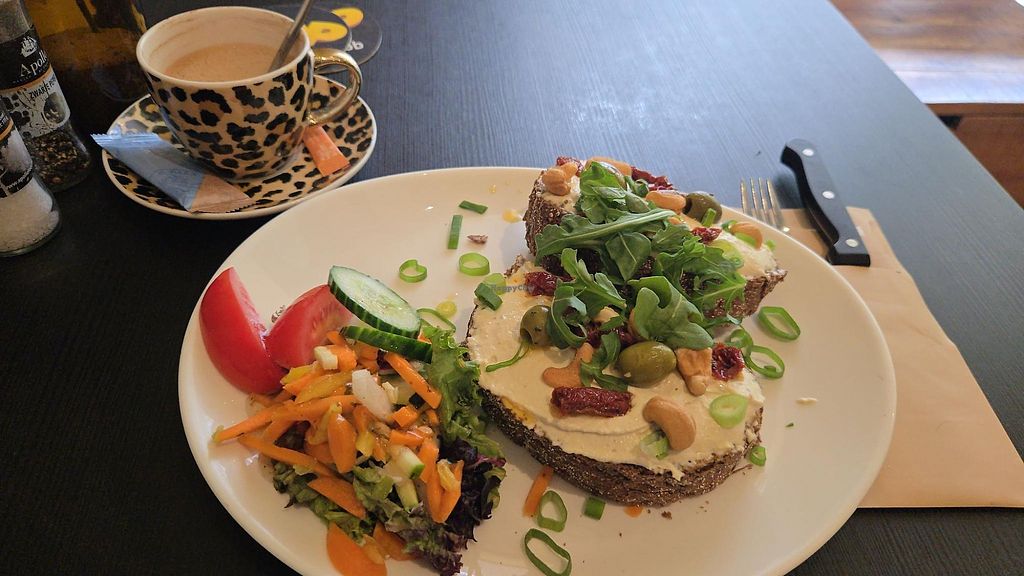 They have expanded on the vegan options in their menu since they opened, I was pleasantly surprised! They serve vegan sandwiches and salads, and have a vegan apple pie with ice cream and whipped cream. They also have oat milk as milk alternative. The staff is very friendly and well-informed on the ingredients. Of course the cats are super cute and easy-going.