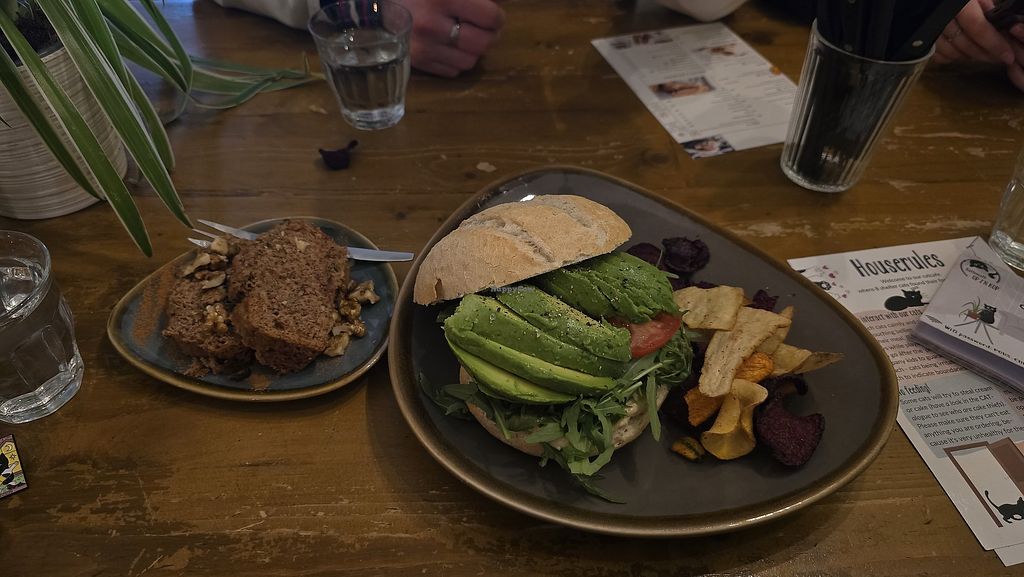 I ordered a vegan option off the menu however I got a completely different sandwich that had cheese on there, they removed it but I don't know if the other stuff was vegan as well. So I unfortunately had not the best experience with the food but the staff in the cafe were very nice and offered an extra free drink on the house. The cats were super cute and the cafe had a very homely atmosphere.