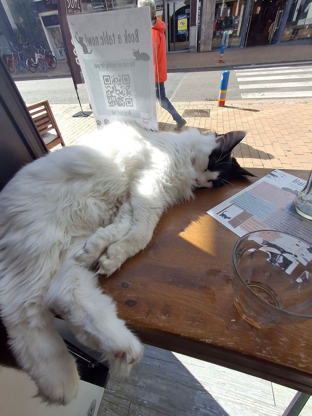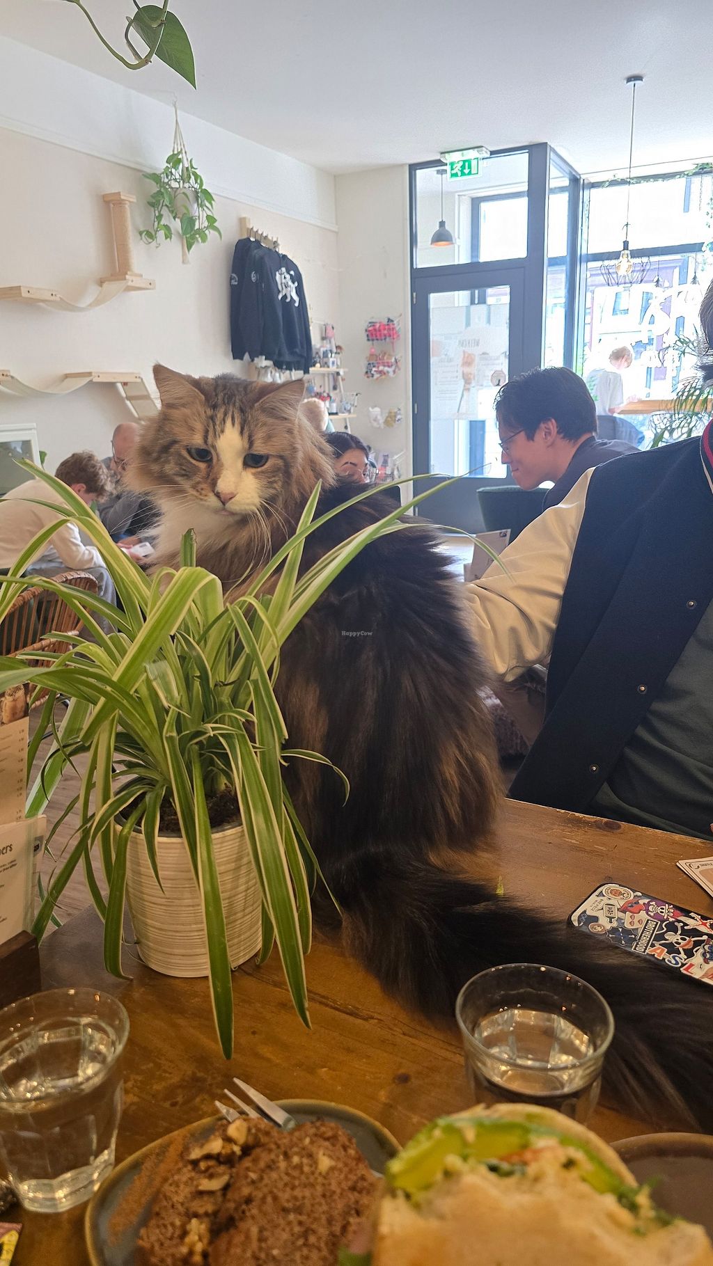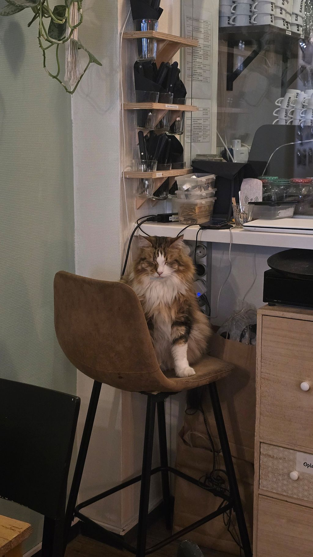 Never been in a cat cafe but this one was really nice. They have clear rules for the visitors on what to do and not to do while your in the cafe to keep an nice atmosphere for the cats. An the tables there is a description on all individual cats, what there names, ages, and there likes and dislikes. We ordered here drinks and some soy yoghurt with granola.