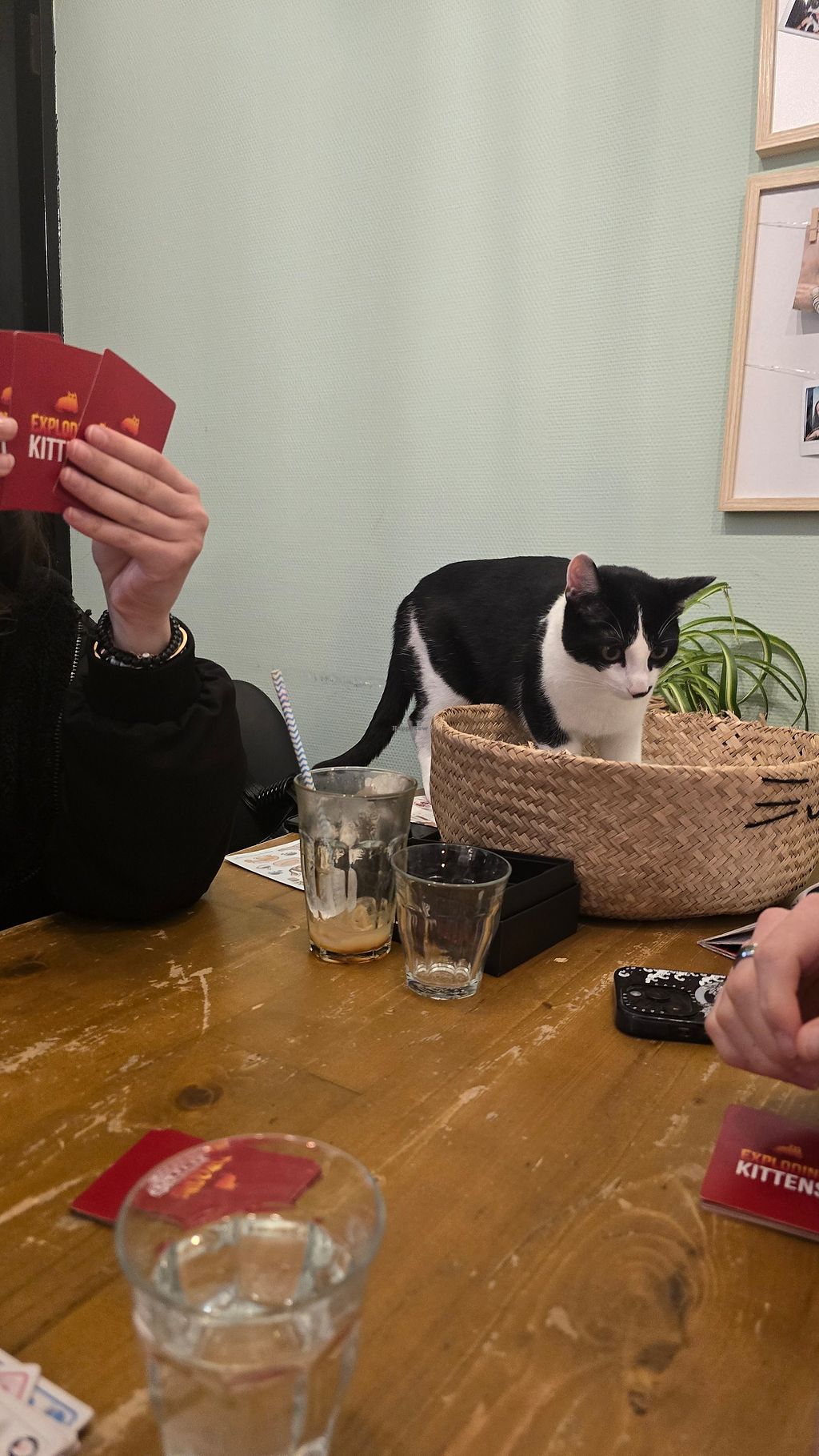 i ADORE cat cafes and this one was just so cute😄their vegan selection honestly surpassed my expectations; the portions were great and the food tasted amazing! they also have a huge variety of cat themed board games which are so cute. good vegan food cats and i will be there yesterday 😛