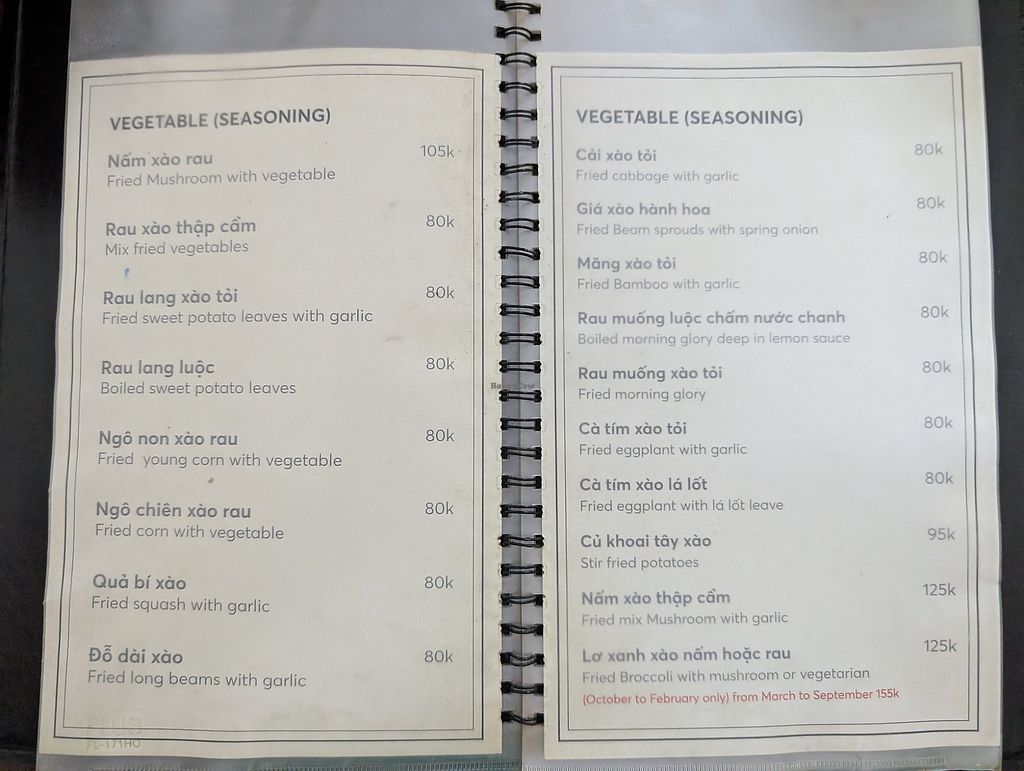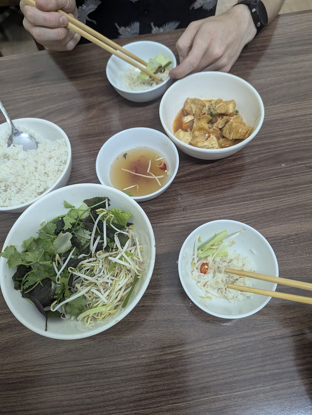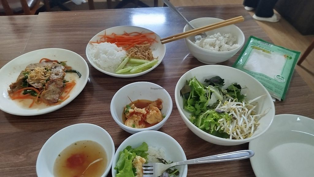 The best food I’ve had in Vietnam so far! Everything is 100% vegan, and the menu is full of creative and flavorful meat alternatives (everything from chicken, beef, fish and even crab). On top of what you order, they serve three complimentary side dishes.