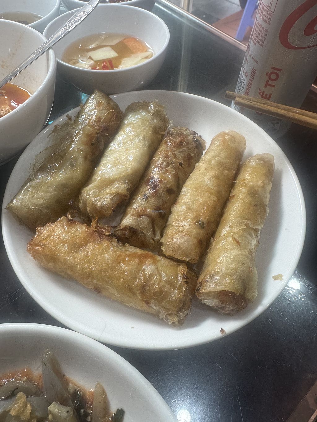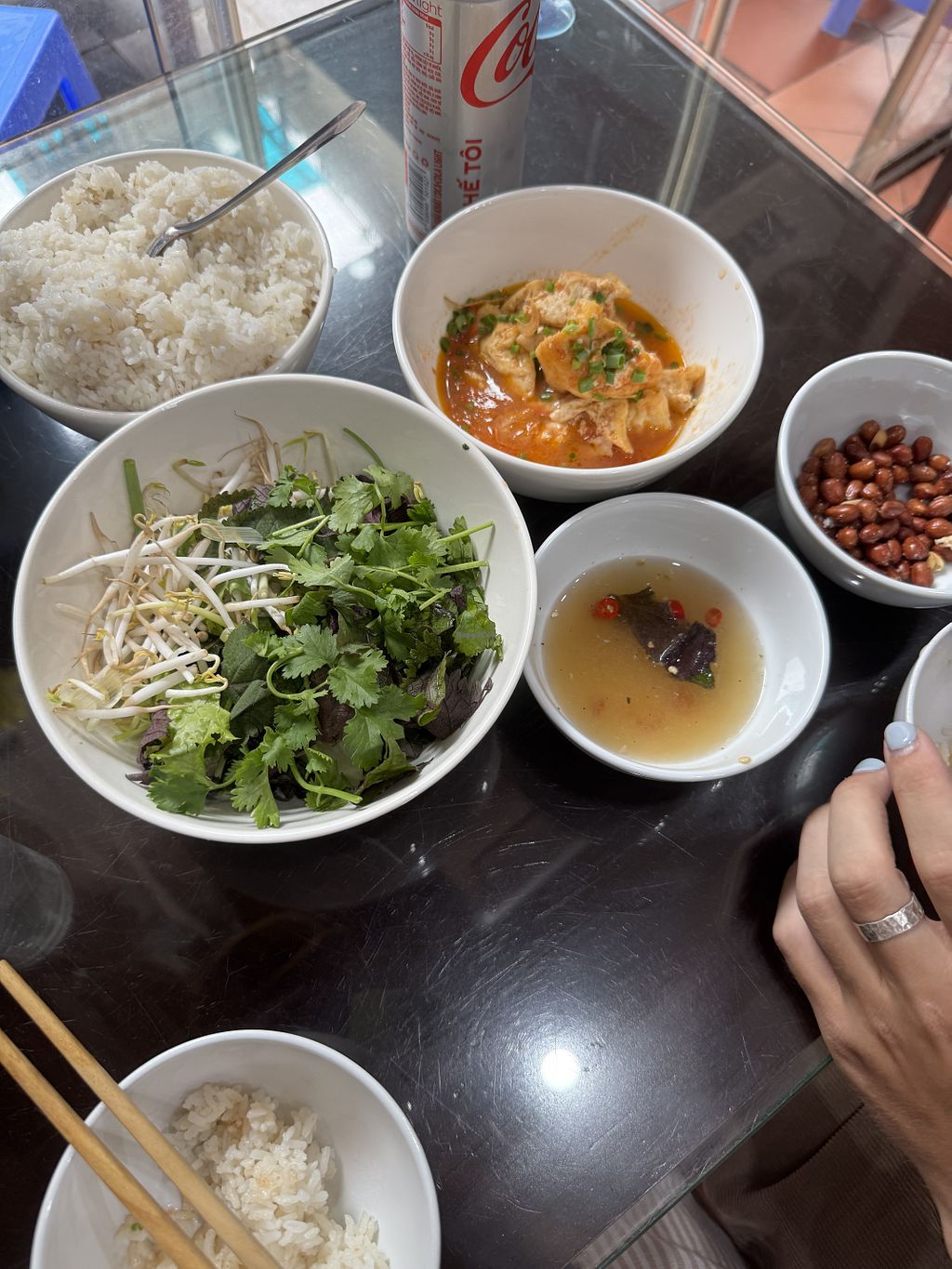 If you're looking for a no-frills but delicious homestyle meal in the center of Hanoi, look no further! This place was amazing. We were just looking for a light meal. Literally ordered three things only—spring rolls, a main dish, and stir-fried morning glory—but they kept bringing us more! Food was simple yet so tasty. They even showed us how to incorporate the bowl of herbs/greens into the meal. Had we had more time in Hanoi we would've definitely come back!