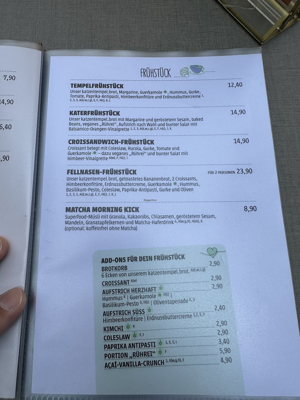 From a cat cafe franchise, which I’ve heard about but never visited before in any German city, I expected an overpriced, overly greasy fast food. I was pleasantly surprised! Besides breakfasts. burgers and sandwiches (which all looked appetising!) there was variety of other foods, such as bowls, goulash or even knedles. We settled for two bowls and they were both very tasty and felt on the healthier side.