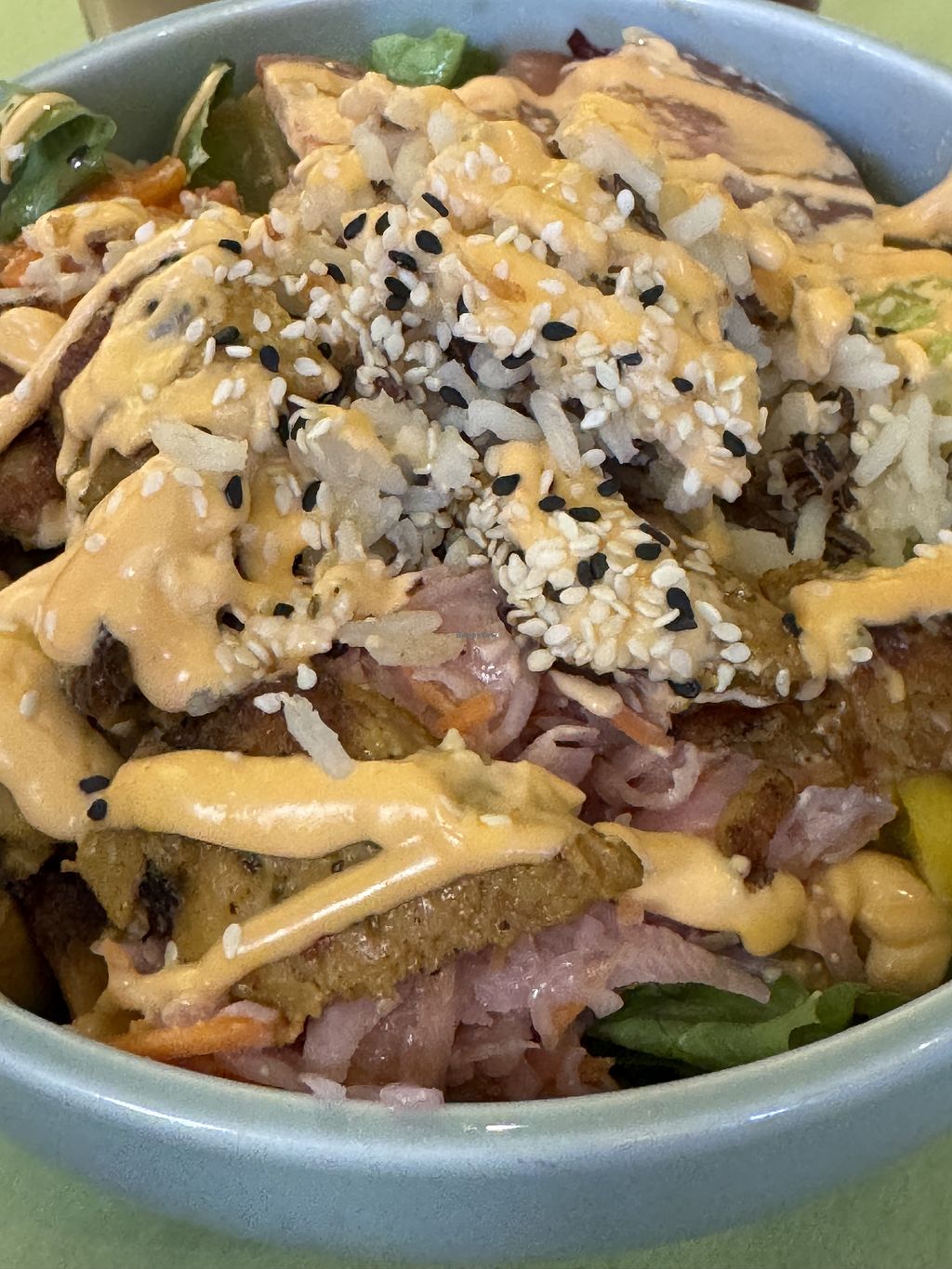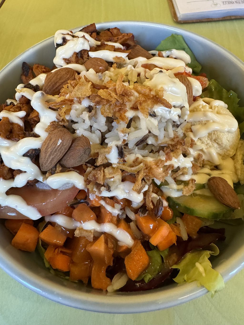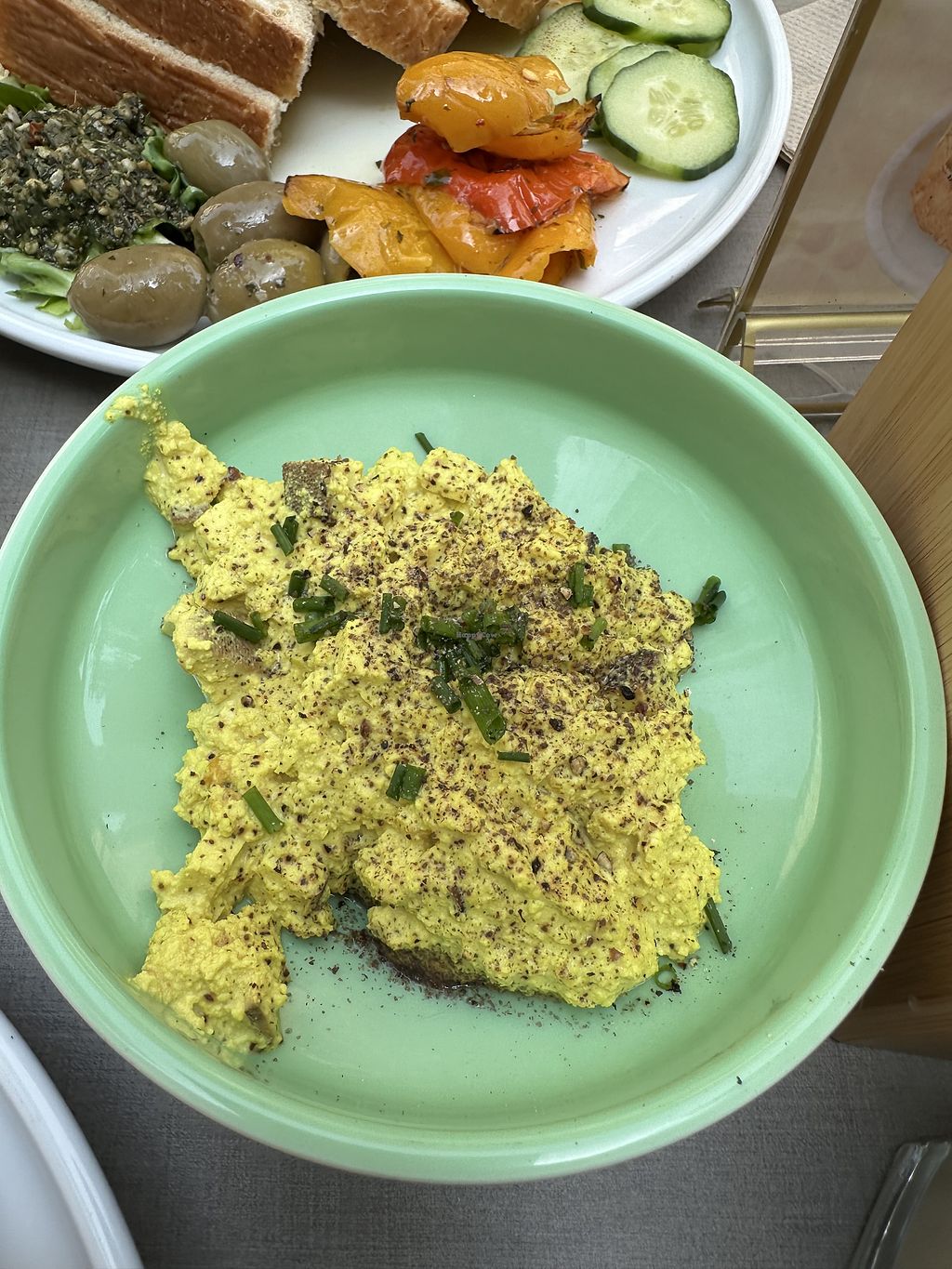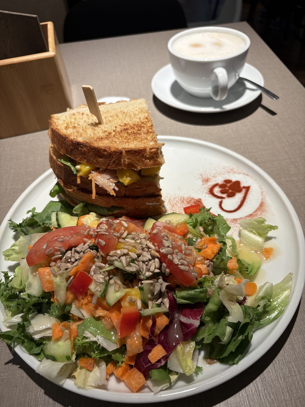 Very tasty tofu scramble, sandwich and salad. Portions pretty generous. The little furry friends were the highlight of my experience. 🐱