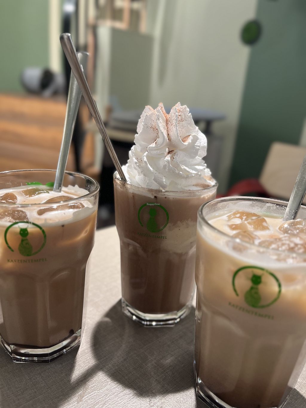 Fully vegan “Temple of Cats” operates cat cafés across Germany, where diners can enjoy the company of rescue cats. Serves vegan food including breakfasts, soups, salads, sandwiches, daily plates, cakes, and tarts. Has oat and soy milk for drinks.