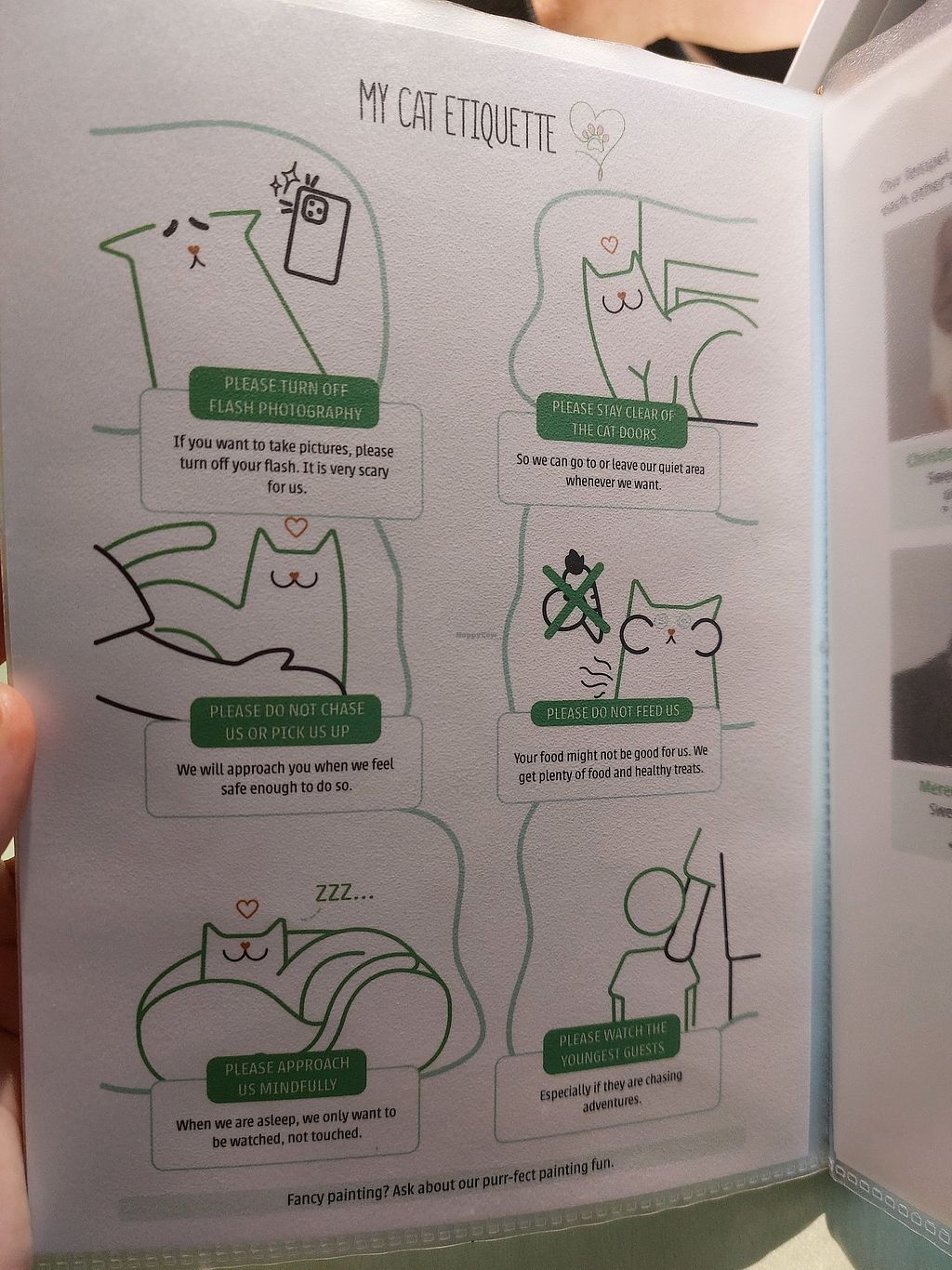 Loved to be able to see the cats around! Food is good and the theme with the cats paw on every dish helped make this place magical.