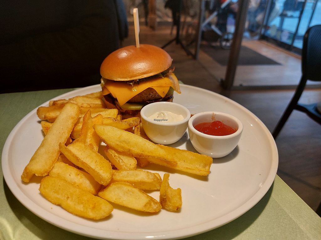 Lovely café with a fully vegan menu. Had the "Steak it easy" sandwich with kimchi and it was super tasty. Very friendly and helpful staff. Cozy atmosphere with the rescue cats roaming around.