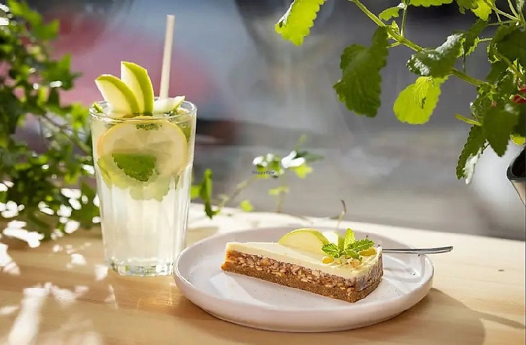 Cafe offering vegan cakes and drinks with non-dairy milks. Open Mon-Fri 08:00-18:00.