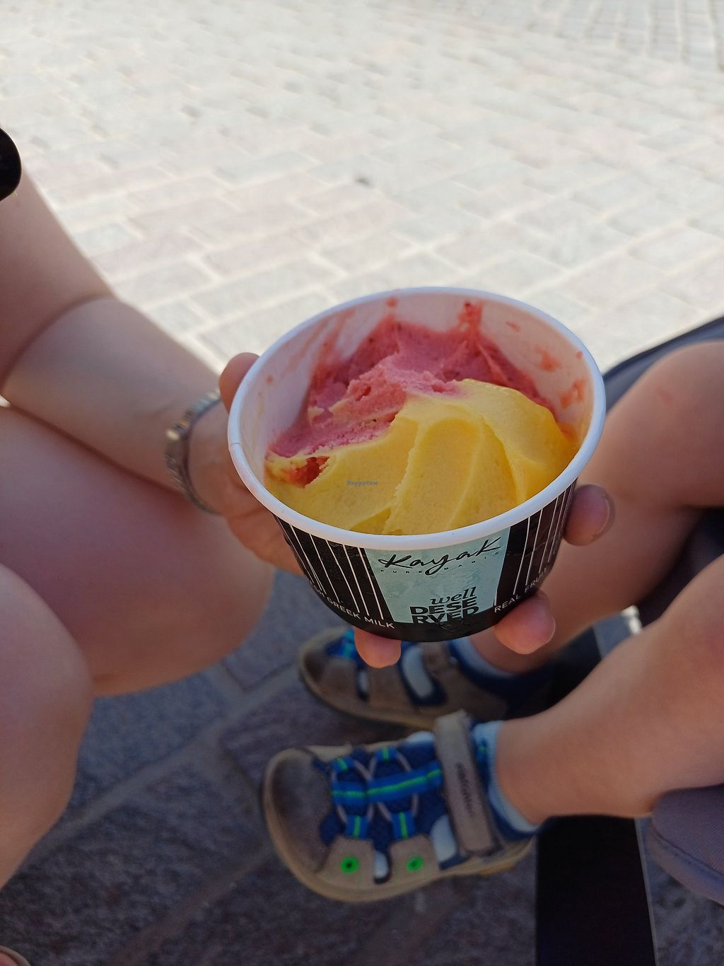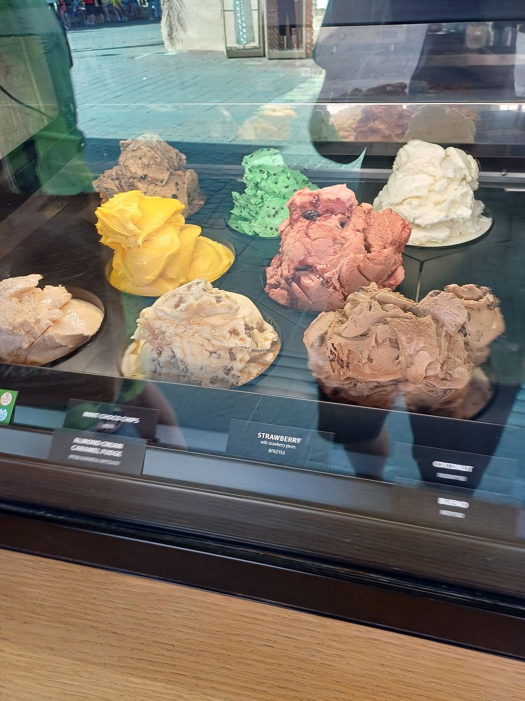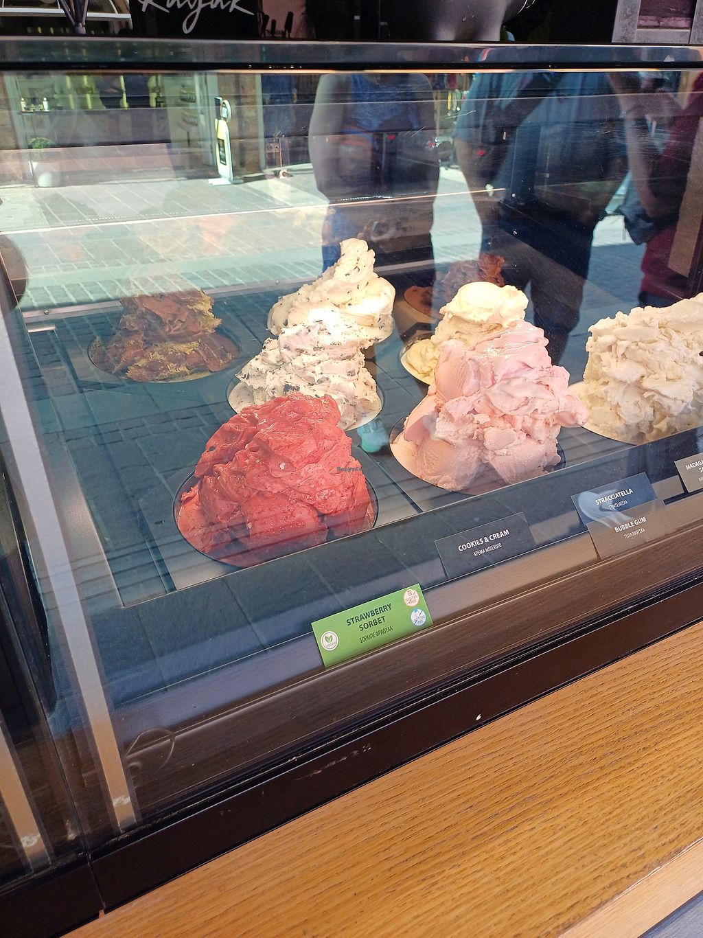 We tried vanilla, chocolate, mango, and strawberry sorbet and they were all really good! Especially vanilla because I never had a vanilla sorbet before. Vegan flavors were labeled.