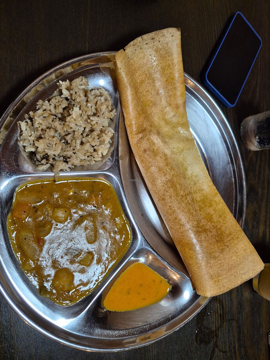 Read moreI had the chapati set which came with rice, bread, dhal, vegetable curry poppadum and pickles! My wife had the dosa set which was also delicious. Would come here again for sure.
