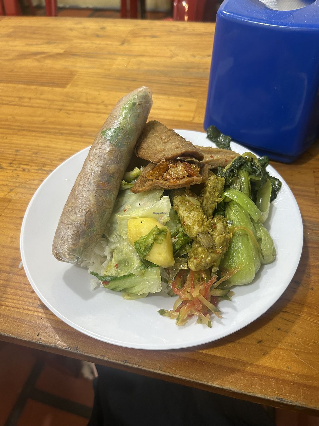 Their buffet is huge an you pay by plate. I had a bug plate of food and one spring roll. I just went for tofu and veggies and avoided the mock meat things. The egg was a surprise with carrot filling and tofu wrap. The roll was ok. They put a kind of herb that smells fishy so I didn't like it. I paid 50k in total. A bit higher than other places but don't know if I was overcharged or not.