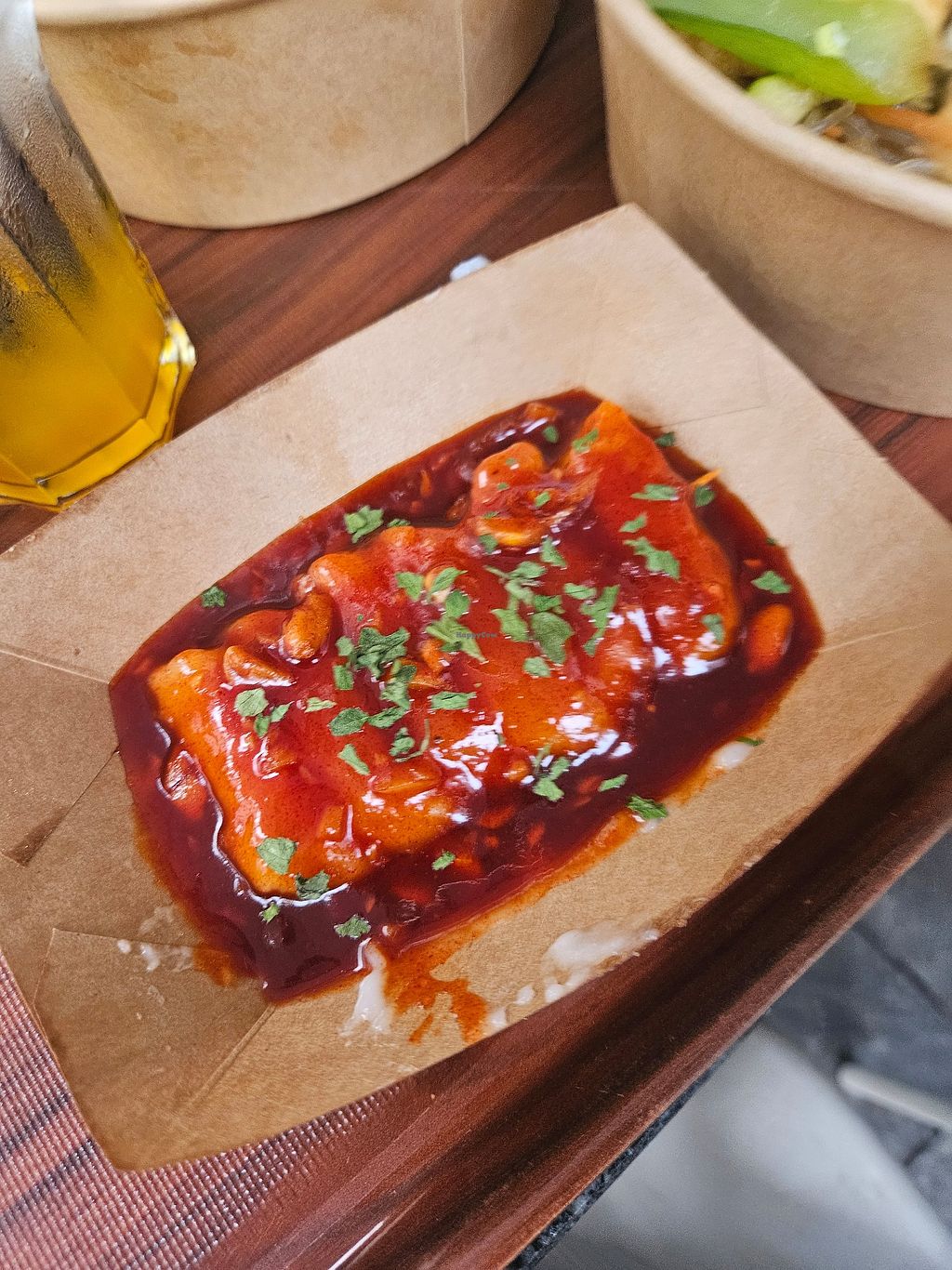 was really good and filling (and spicy haha) only negative thing is that even though we ate at the restaurant it was served in disposable to go stuff