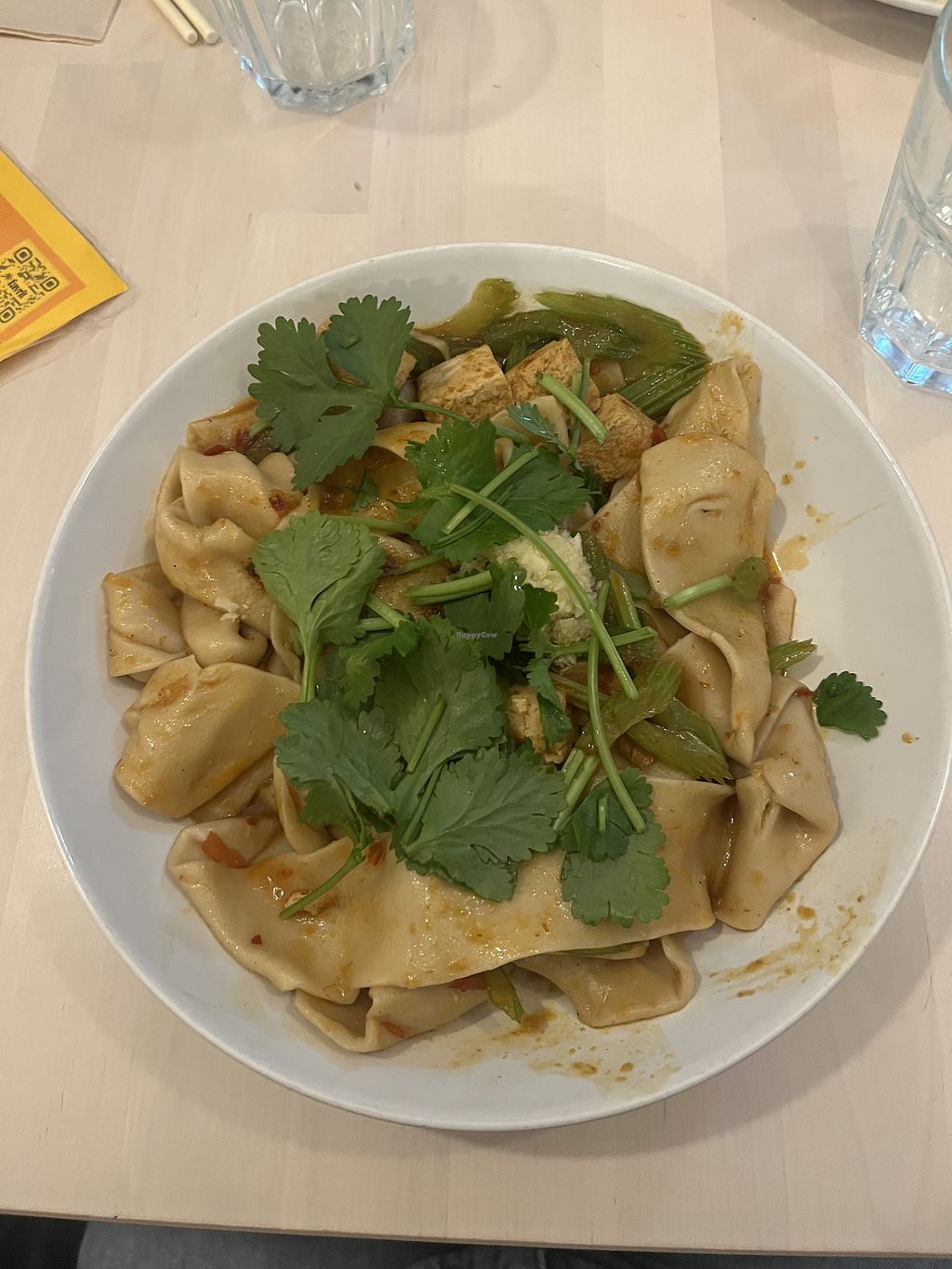 Homemade spicy noodles with tofu. Tasty! Beware that it's BATHED in oi…