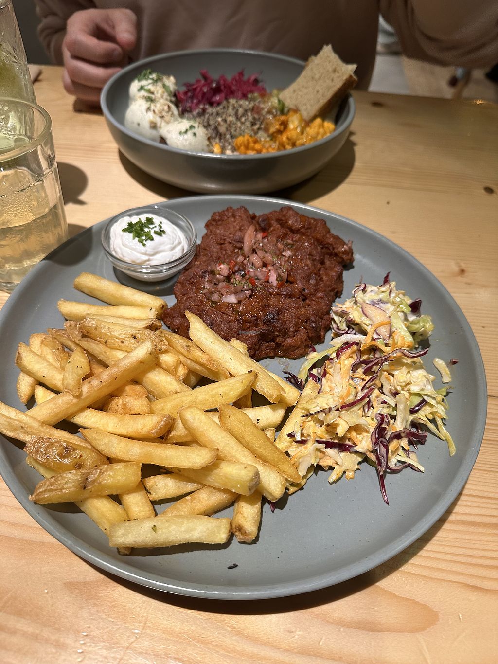 This was the busiest of all the vegan places in Porto. The food was incredible and the service was incredibly efficient. The quality was top tier. Highly recommend trying the food here. We had the franceshina with vegan egg, and the chimichurri steak for main course and the tofu bao buns to start. Yum to everything.