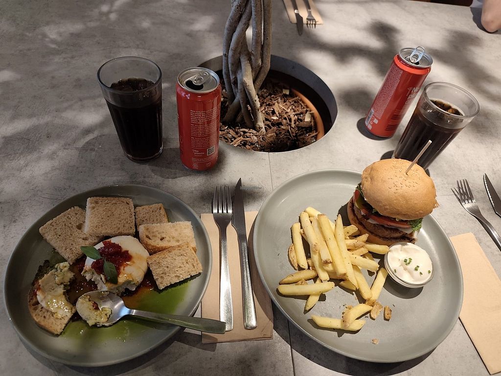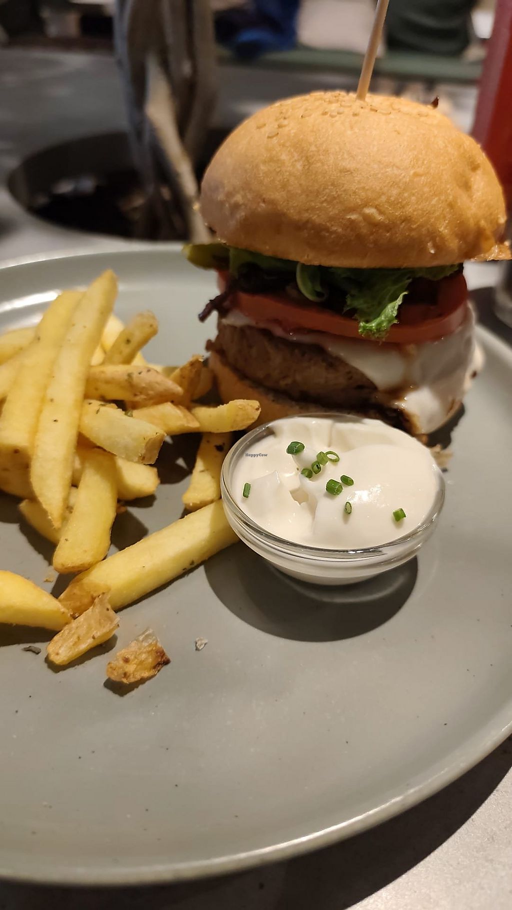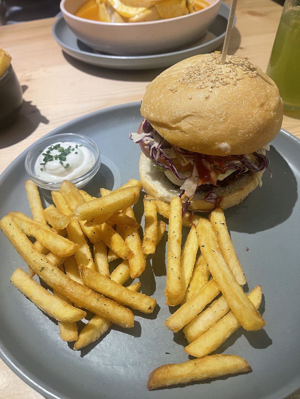 Read morePedimos una hamburguesa, muy completa, y acompañada de patatas con una salsa espectacular de veganesa con un toque de ajo. También pedimos la burrata, muy conseguida, lo único por ponerle una pega es que estaba acompañada de pimientos que le robaban el sabor al resto de cosas, pero es algo que volvería a pedir.