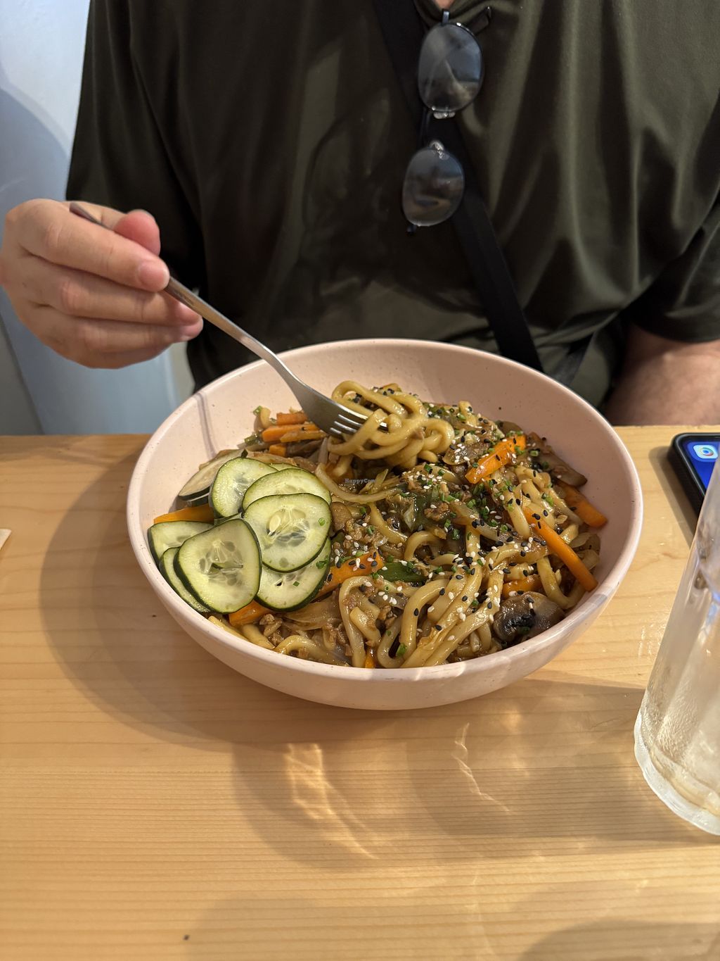 Make sure you book ahead for this place on busy days. It’s 2 stories and it gets very busy. We really enjoyed our meals here and the service was great! We had yakisoba (really good!), falafel bowl and cheesecake.