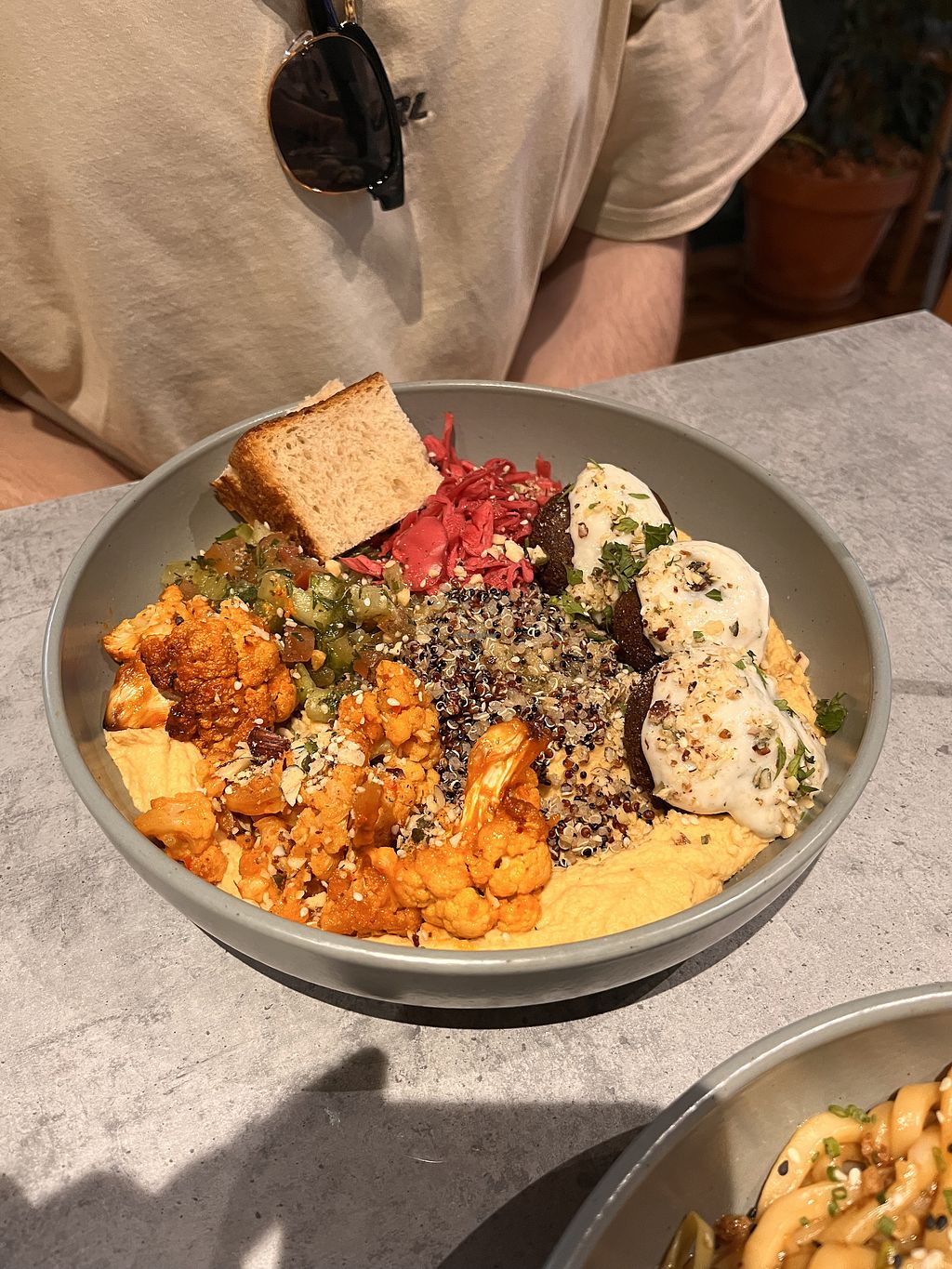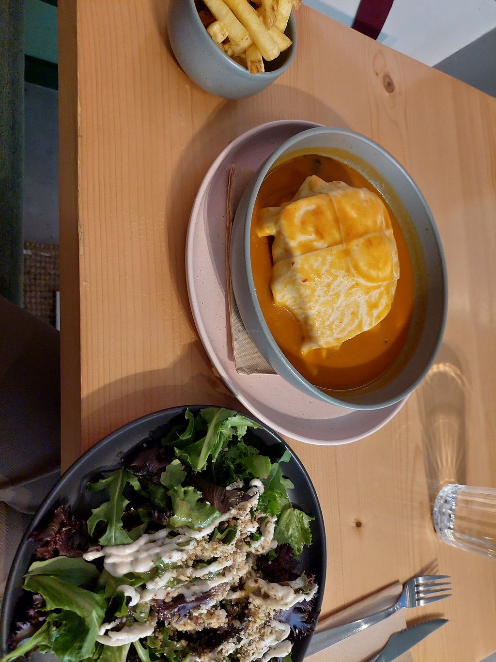 Kind Kitchen is a fully vegan spot in the heart of Porto, and their Francesinha was absolutely delicious. The extra €2.50 for the vegan fried egg was a fun experience. The “Middle East” bowl with falafel was supremely good, too. Fingers crossed we’ll have room for dessert next time!