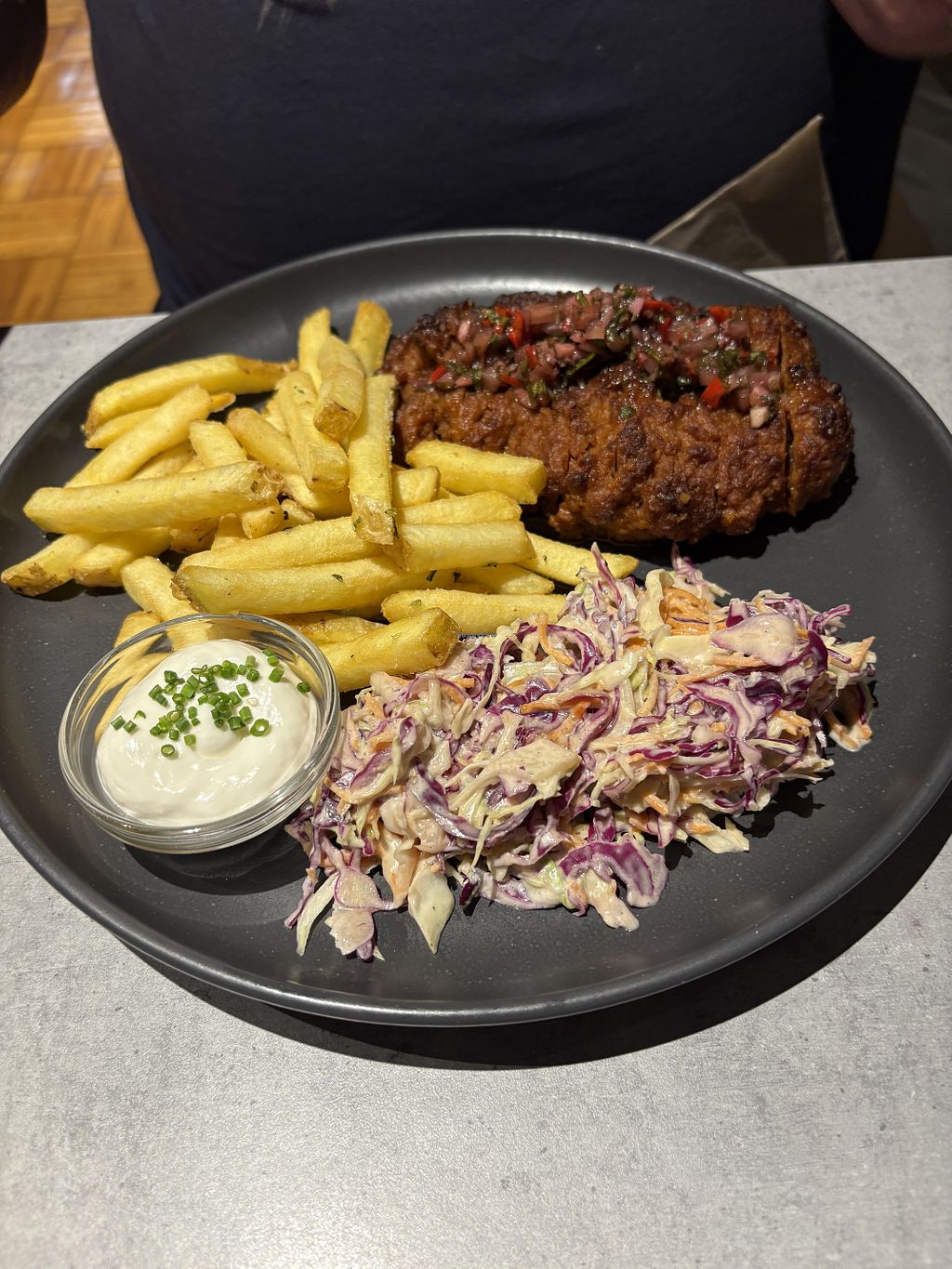We had high hopes but left a little disappointed. Service was ok but the seitan steak was very chewy which was off putting. The tofu ‘salmon’ was pretty good though
