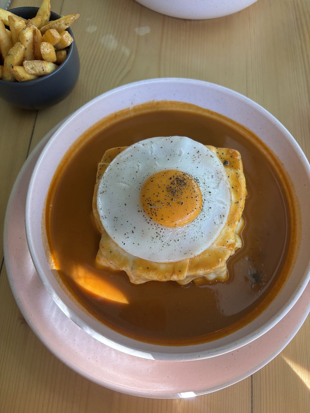 I tried the francesinha topped with a fried “egg” and it was incredible — honestly one of the best vegan comfort dishes I’ve had. The egg looked and tasted uncannily like the real thing.