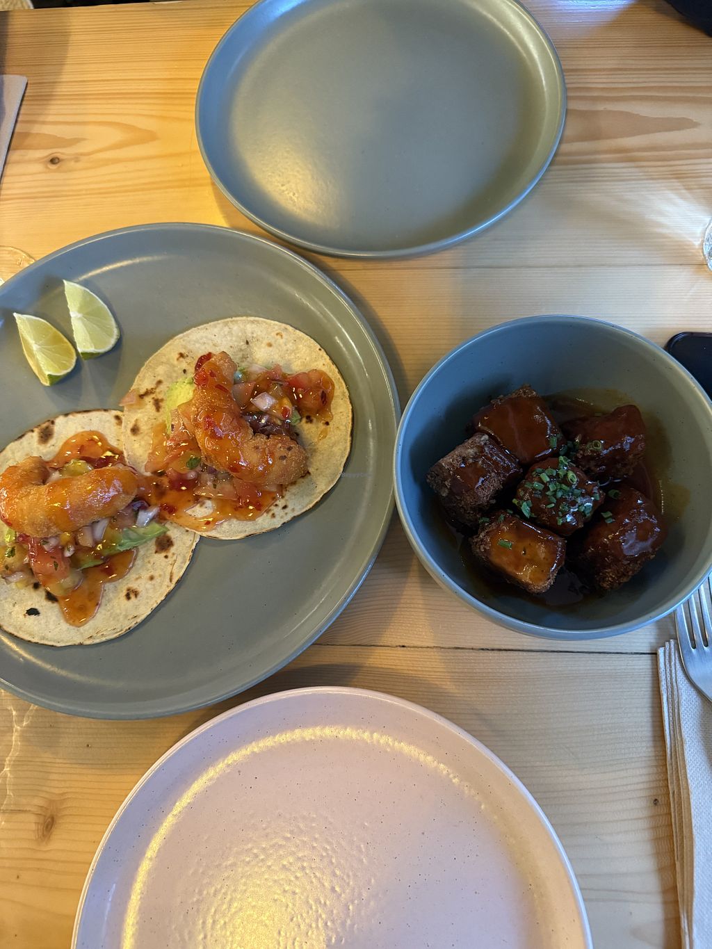 Shrimp tacos + pumpkin feta