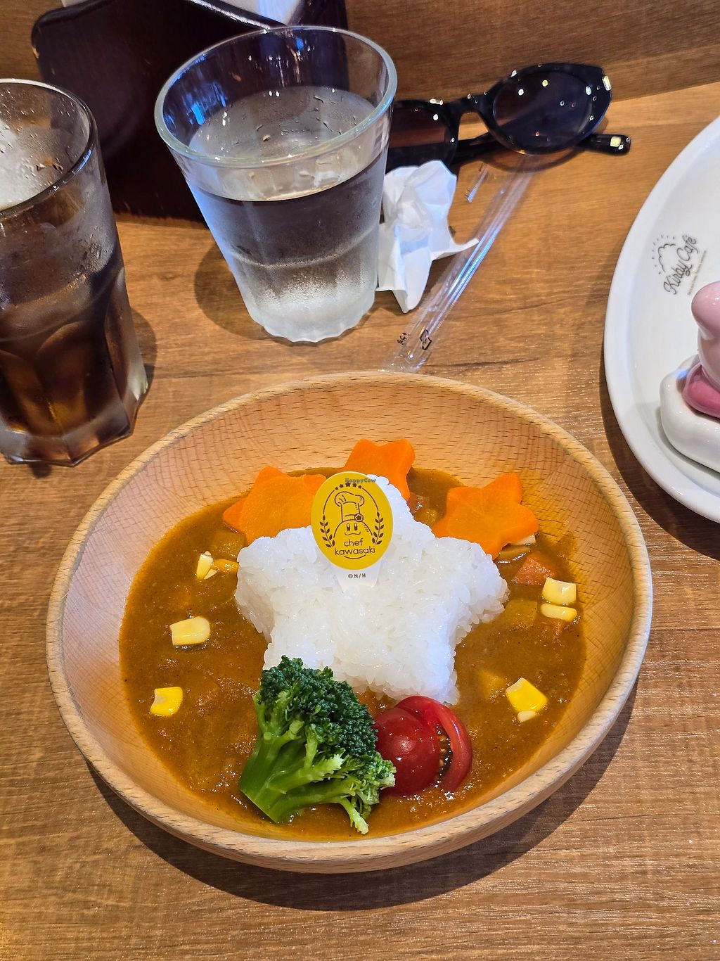 I was so glad they had vegan options at the Kirby Cafe, I had the “Low allergen Ohoshisama curry” since it was small, I also got wedges/fries and a drink! They definitely have room for improvement with their vegan options, but I mostly went for the Kirby theme 💗