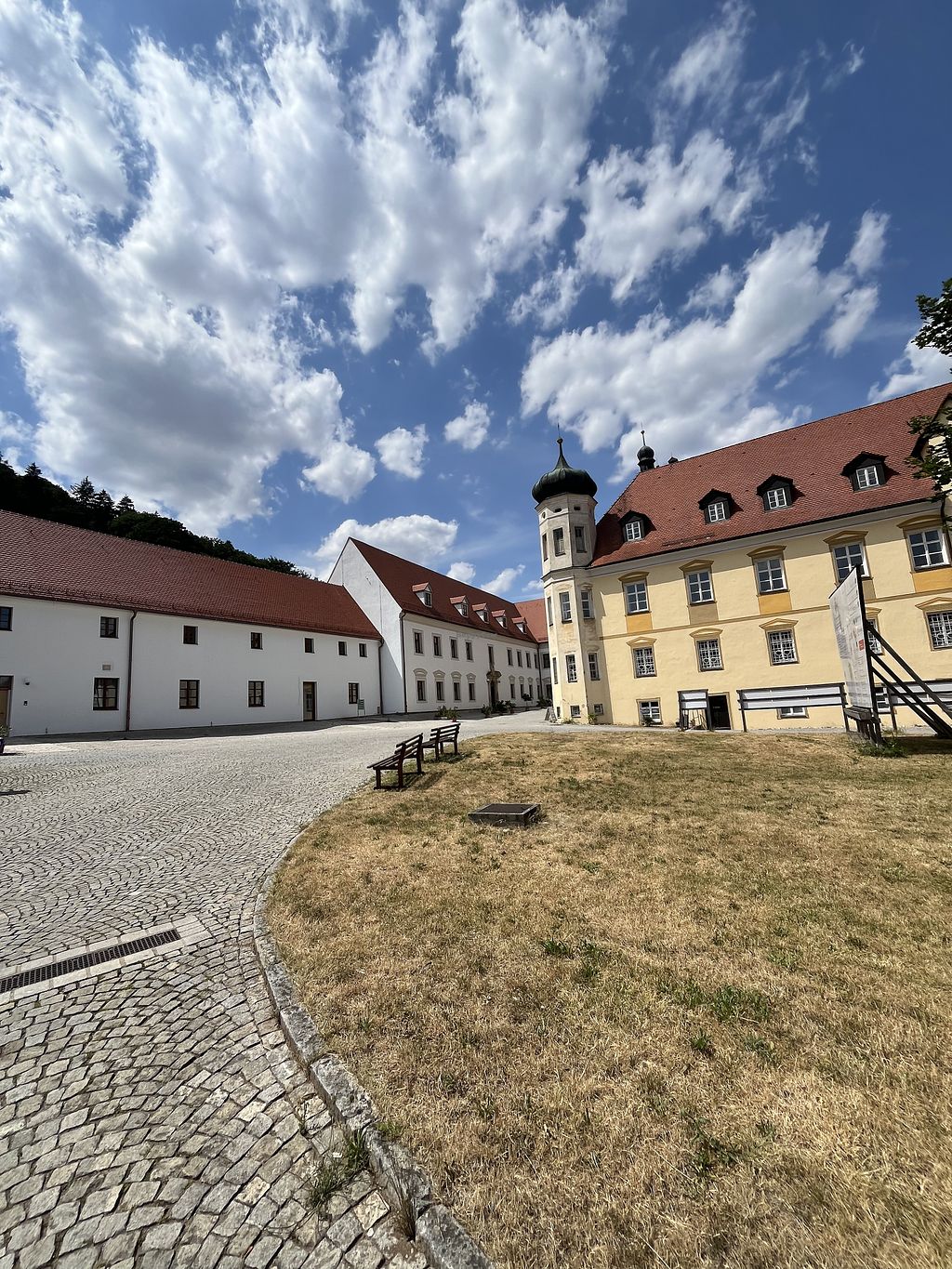 Serves meat, vegan options available. Restaurant located in a tastefully restored Benedictine monastery in the Altmühltal valley, situated along a cycle route. While there are currently no strictly vegan dishes on the menu, the accommodating staff can prepare tasty vegan meals upon request. The kitchen utilizes produce from the monastery's own sustainable organic farm, and there is also an on-site shop selling regional organic products. Vegan options available upon request include salads, stuffed peppers with spelt rice, and vegetable soups. Open Tue-Sun 11:00-19:00.