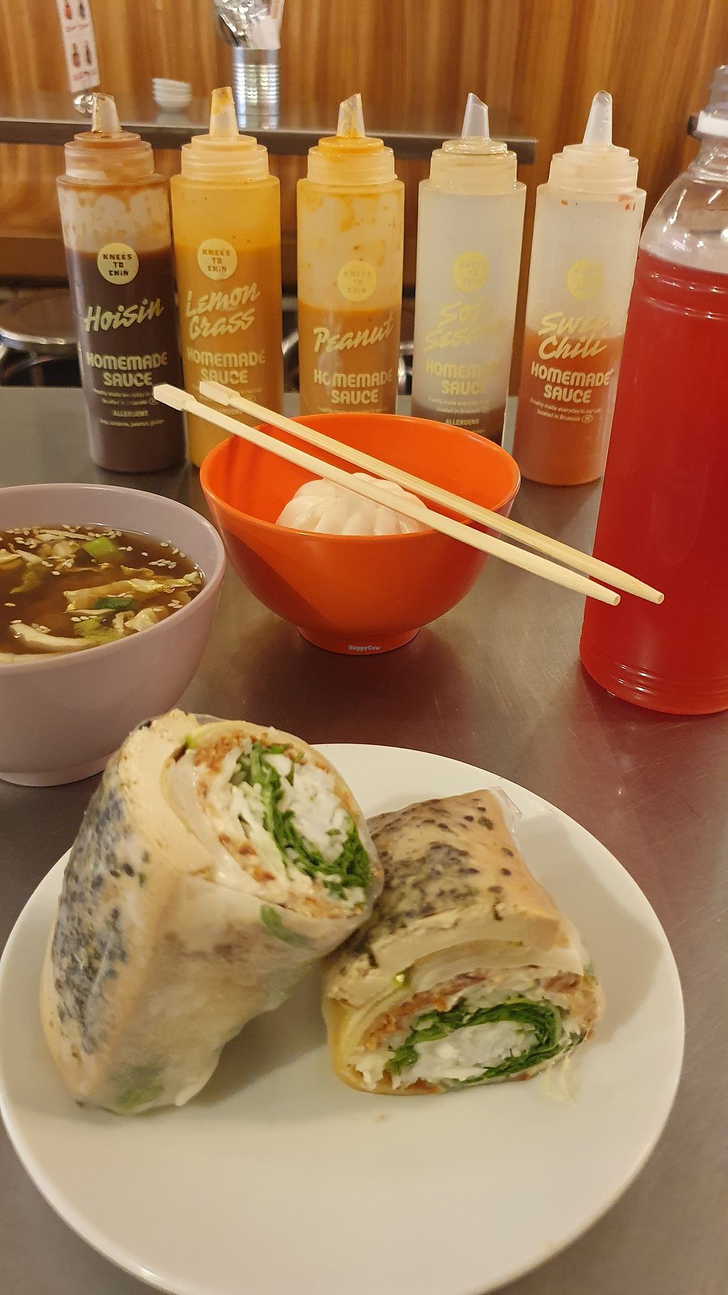 I had the bun, spring roll and miso. They had an array of sauces which was great fun.