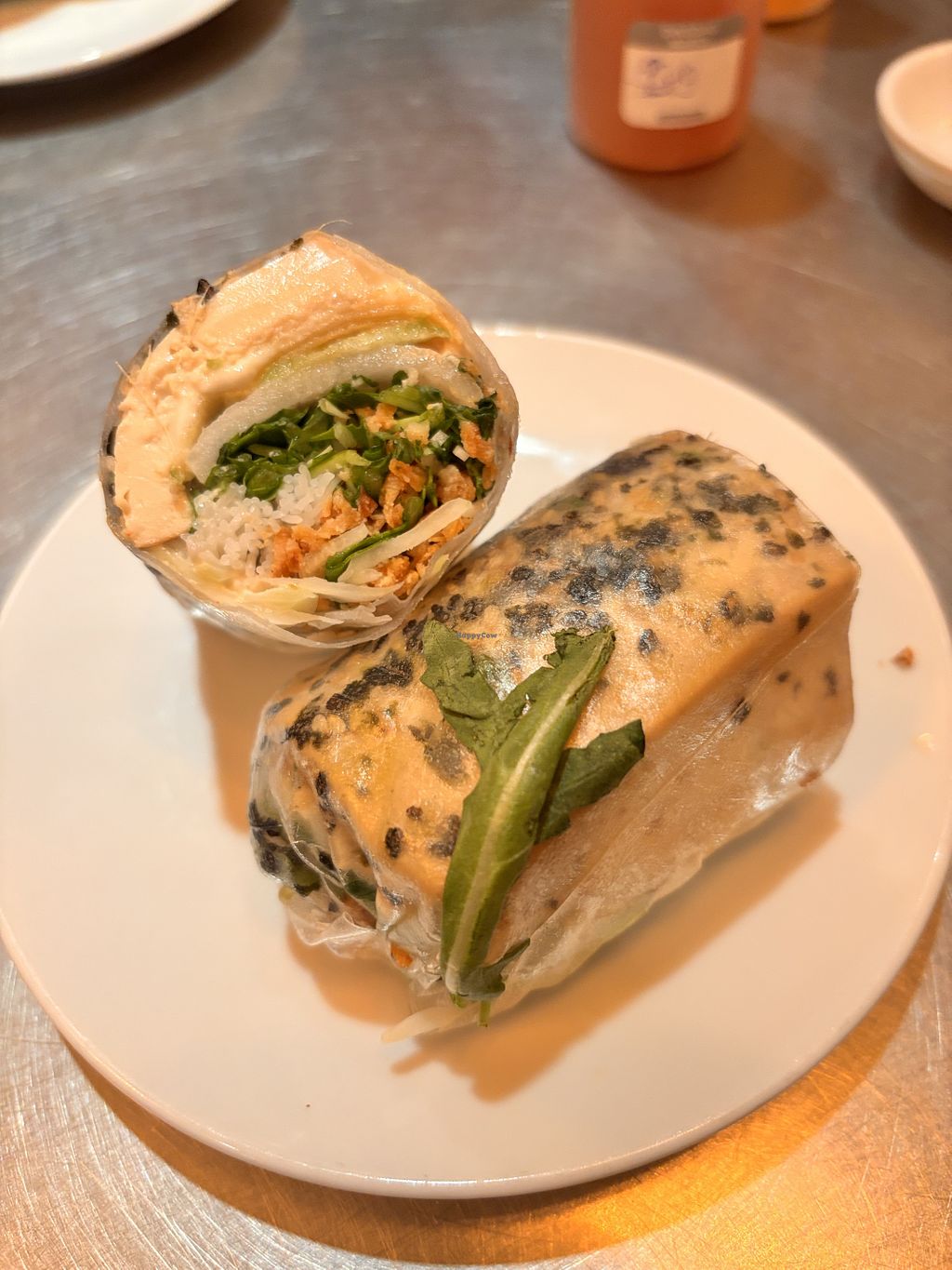 They only have one vegan rice paper roll (caramelised tofu), but it was really nice. I also tried their veggie bun on the side, the dough was so fresh! This place is nice for a quick lunch (they have lunch deals too).