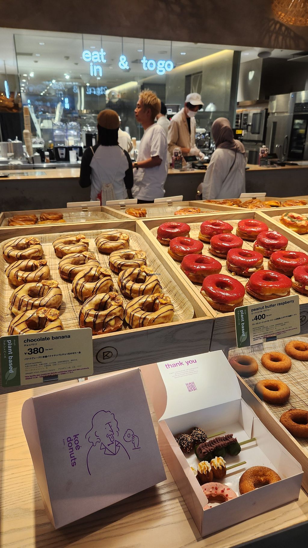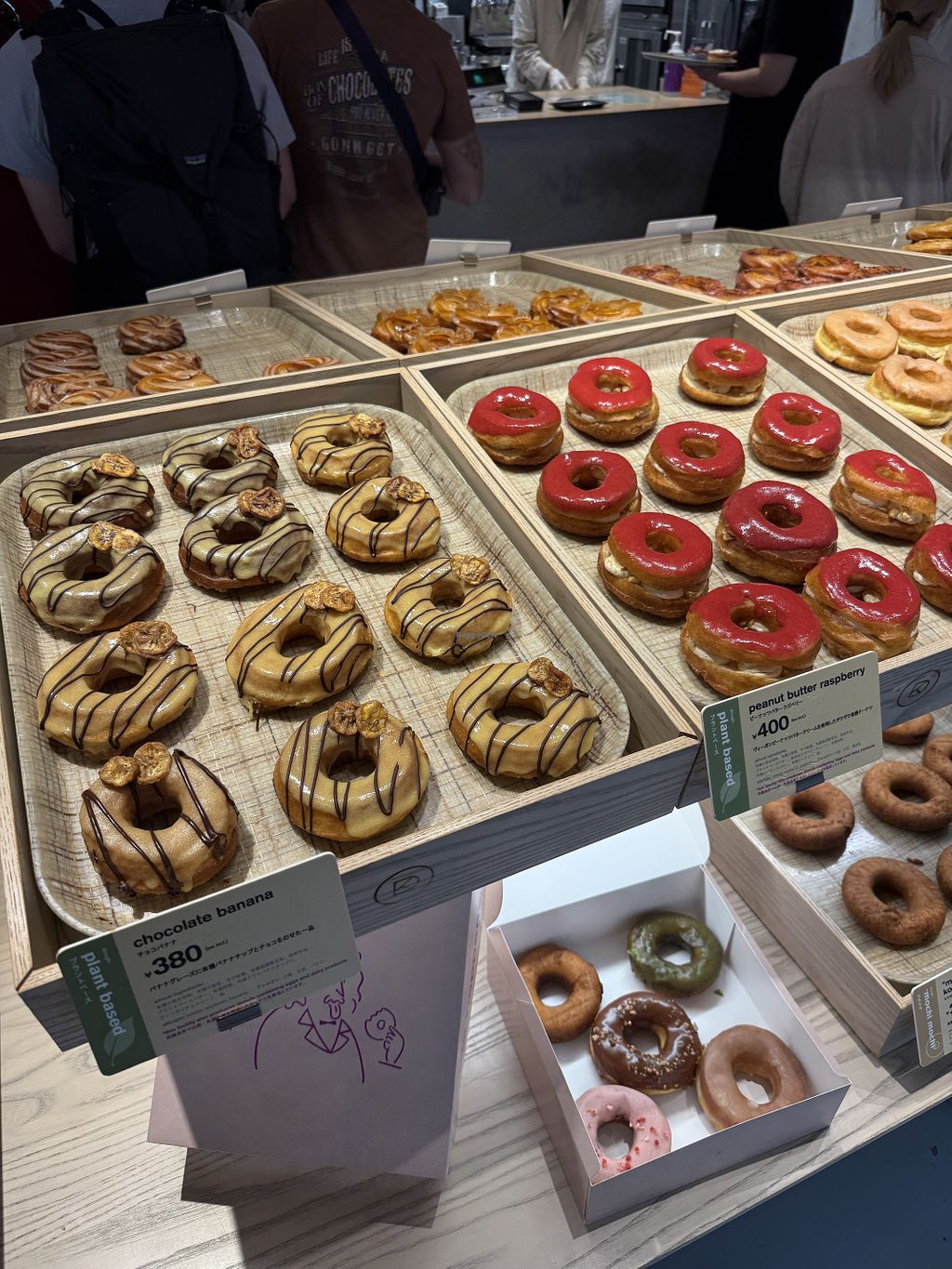 They have some vegan options, like 2 or 3, clearly labelled. The dough is quite dry cause of deep fry, but I think the western donuts are not popular in Japan. I was not astonished, but it is better than nothing.