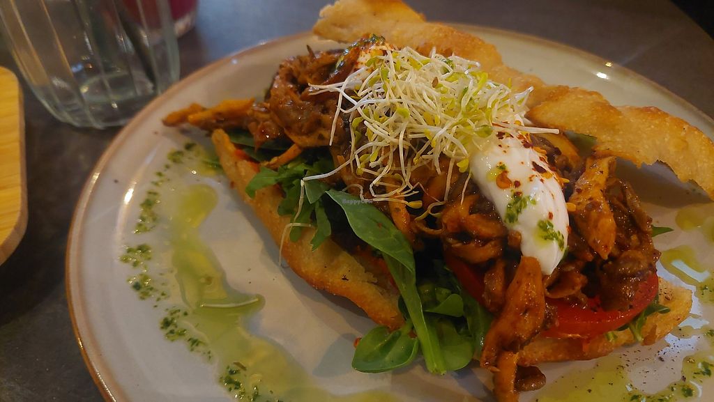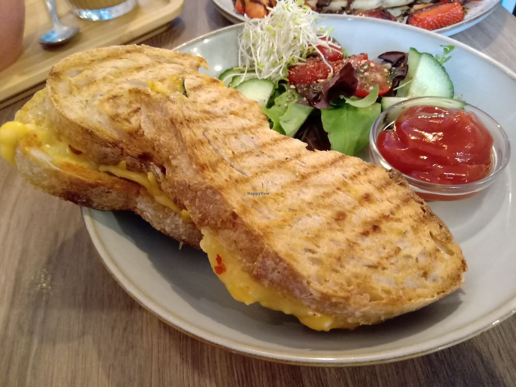Read moreEdit: we went back here and had the vegan grilled cheese and grilled veggies on toast with (optional) vegan feta, which were also very nice. This time we took a chocolate chip cookie and apple crumble tart to go, which were both delicious.