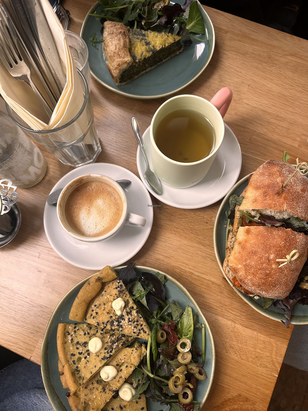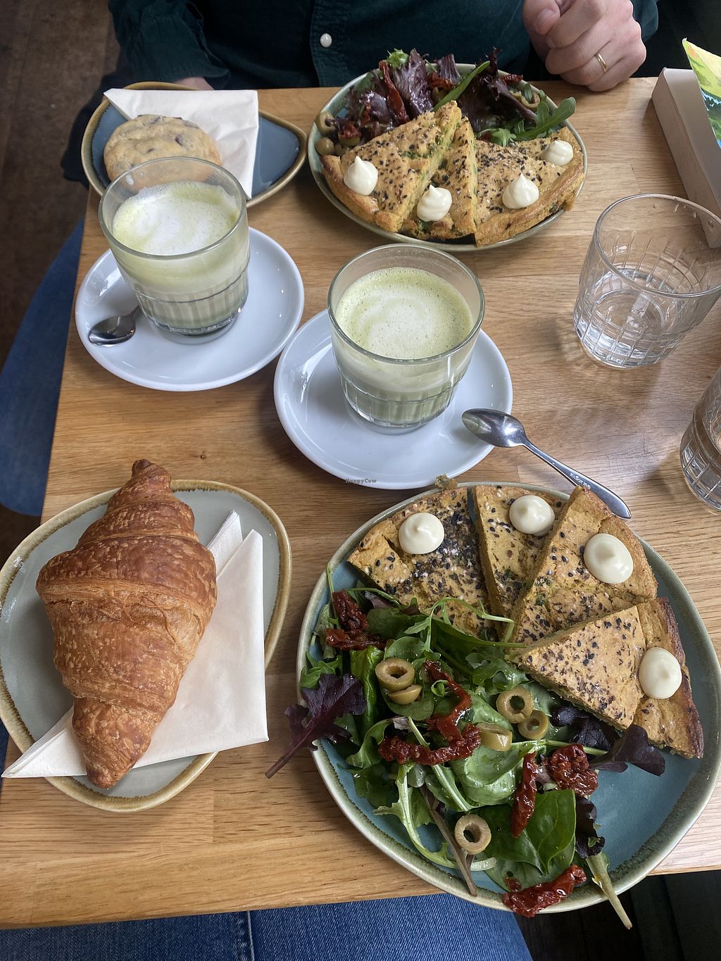 Lovely small place with an all vegan menu. They have cakes, scones, croissants etc but also sandwiches with (chickpea flour) omelette, spinach quiche, mushroom sandwich etc. I had the omelette/frittata on bread and it was delicious. Staff is happy, cheerful and friendly. I’ll be back to try more!