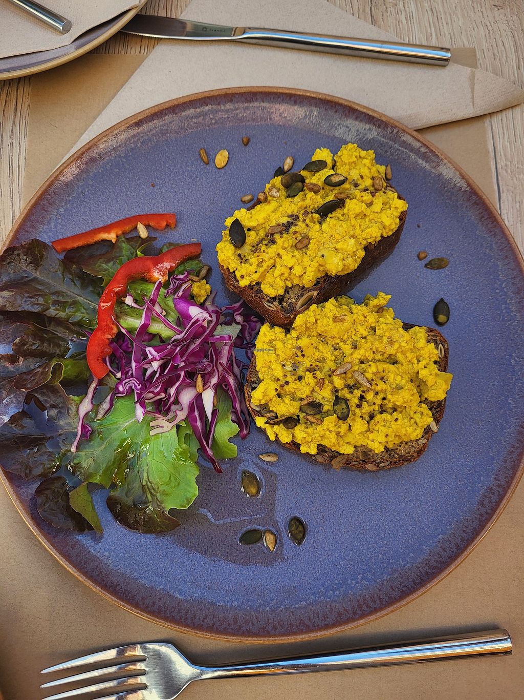 I wanted to get something vegan to take away and found this place on Happy Cow, I ordered a toastie with cashew cheese, it didn't look quite how I expected and seemed quite small but it was actually really nice and filling on a seeded bread. I also had a kefir drink which I've never tried before and was delicious. The food tasted really fresh and healthy. The young lady who served me was very friendly and helpful. The seating area outside is nice and welcoming but I wanted to eat at the beach. I would definitely recommend this place although it is maybe on the pricier side but the same as I'm used to paying in Bath.
