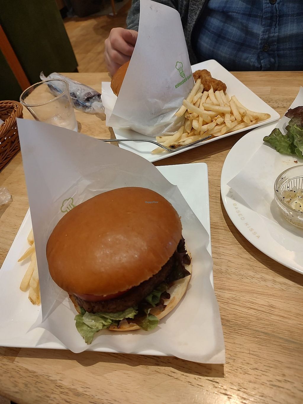 I have been to its non-vegan chain before I went vegan, and I'm very surprised that they have a vegan one here in Tokyo. The burger is MINDBLOWING. I had the soy meat cutlet with egg-like thingy on top, the texture of the cutlet was incredible. Might be the best burger I've had. Matcha soda was amazing as well. 10/10 atmosphere and customer service