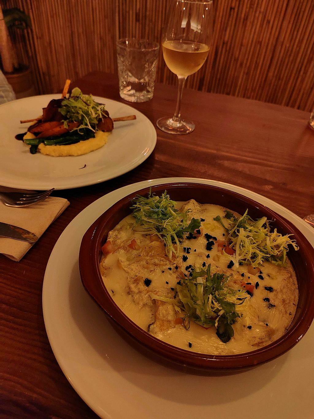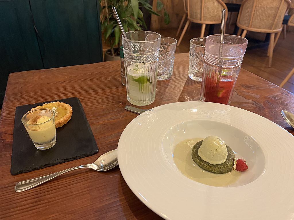 Delicious and beautifully presented dishes. The chef is a real genius! We had mediterranean tofu salmon and seitan ribs as mains, and pastel de nata and pistachio cake with ice cream as dessert