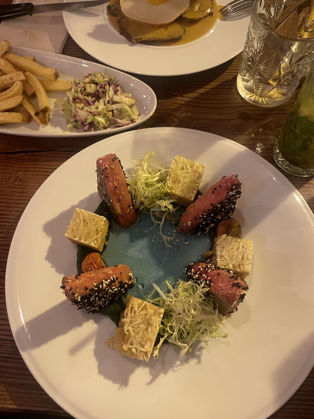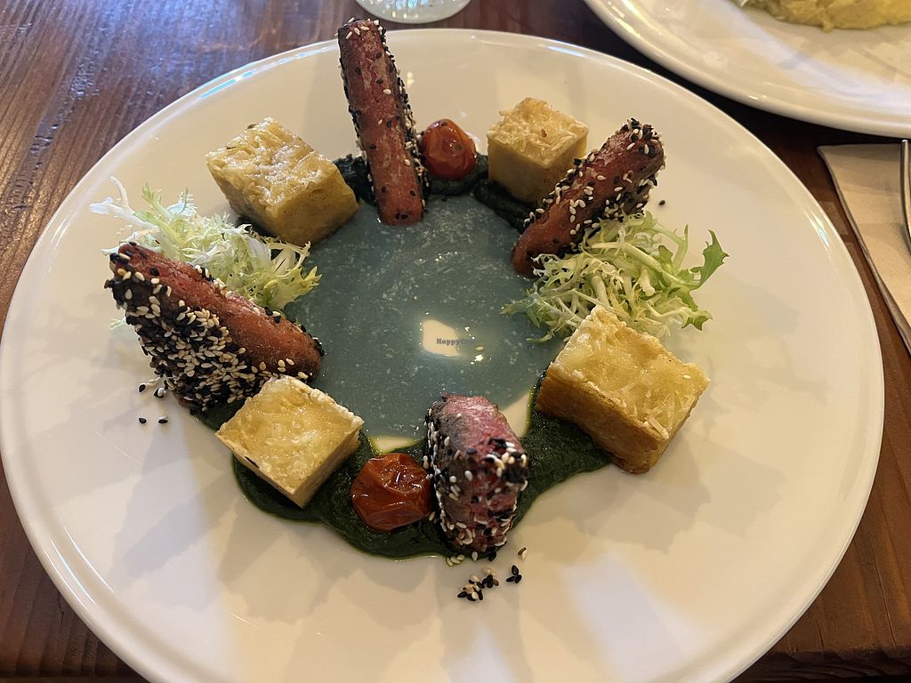 Soo good. Best seitan I've had. Had the cheese plate, seitan ribs, and Tarte nata as desert. All we're very good! Cheese plate was a bit pricey though. Book a table as it was quite full!