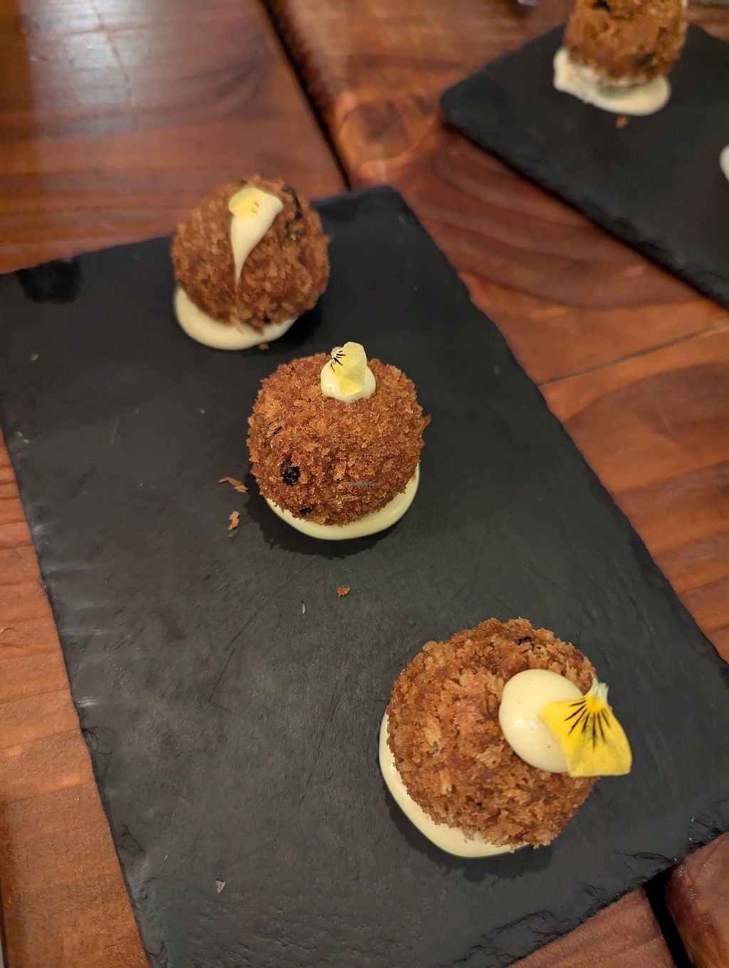 Really amazing food, one of the top 5 vegan fine dining places I've ever been. Was hard to choose, many options seemed great. We went with a francesinha and a cod creamy dish. They were really good! For starters we had choco frito and alheira balls which were amazing!! We were full, but had to try their take on pastel de nata, would recommend!