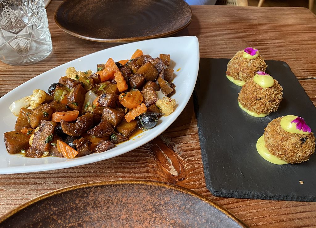 Had starters and mains with my non-vegan partner, wasn’t a fan of the scallops but I had the seitan steak and it was great! Desserts looked good but we were too full