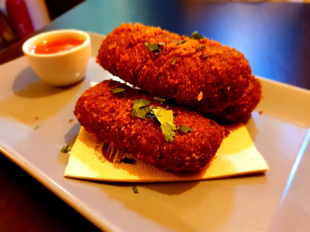 Croquetas with vegan cheese and chorizo