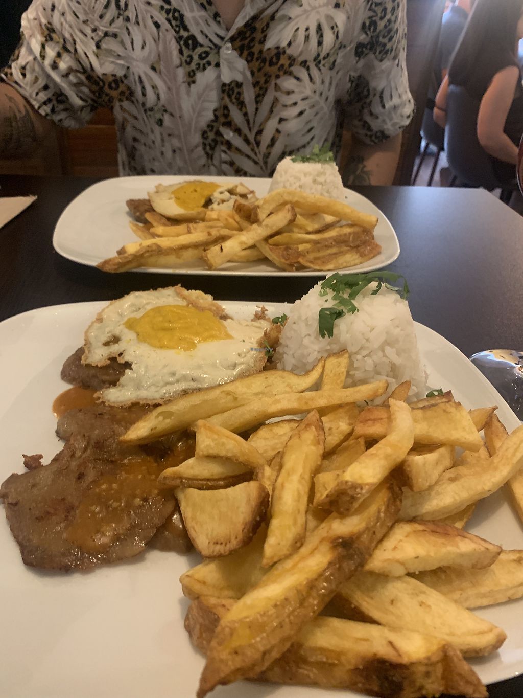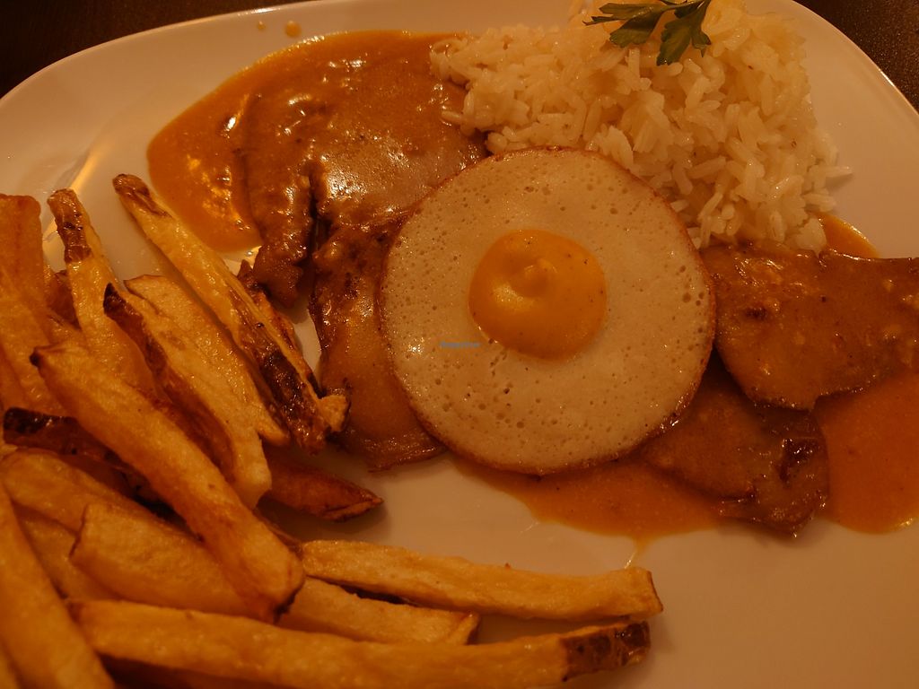 vegan steak, vegan egg and chips