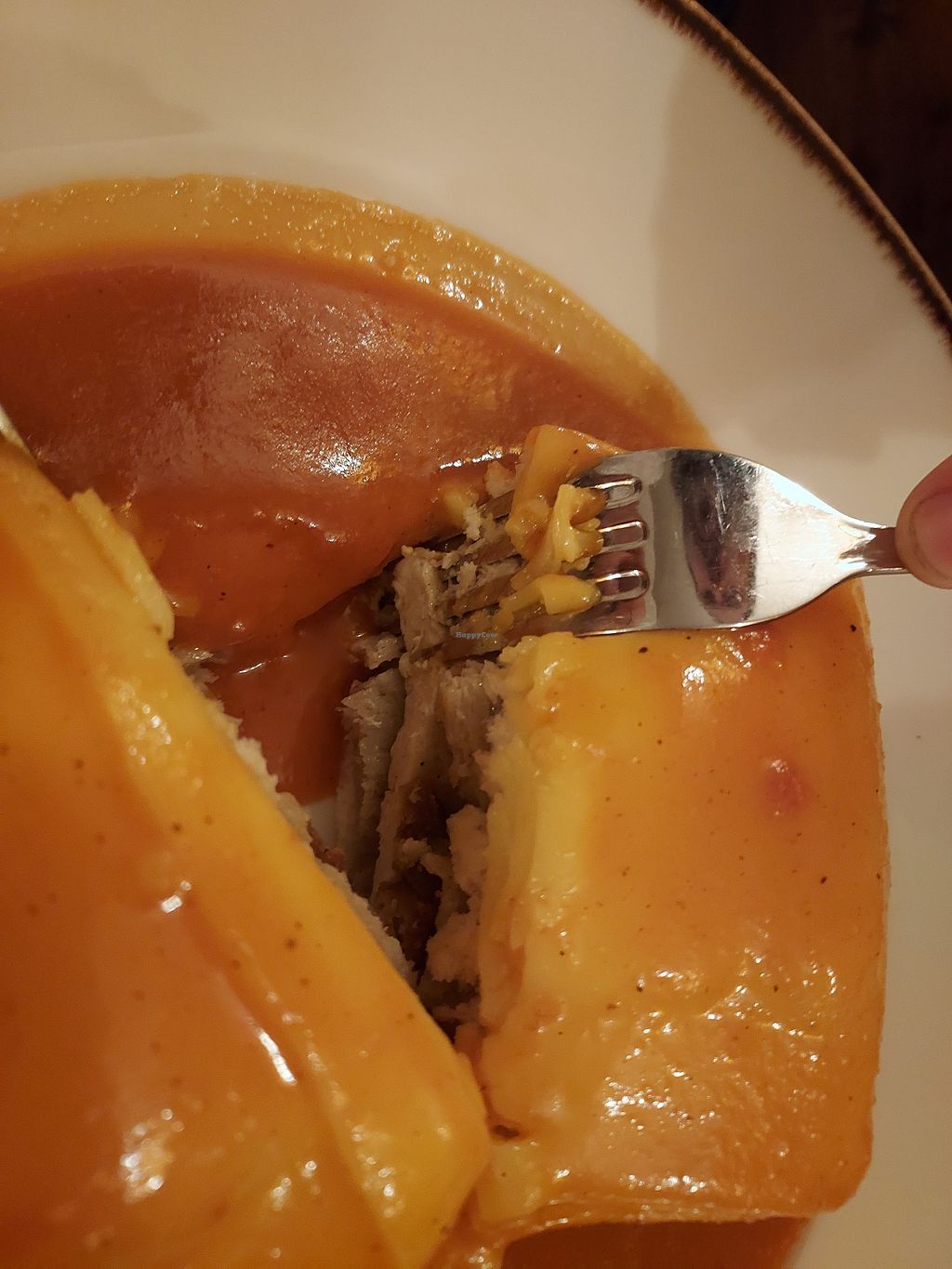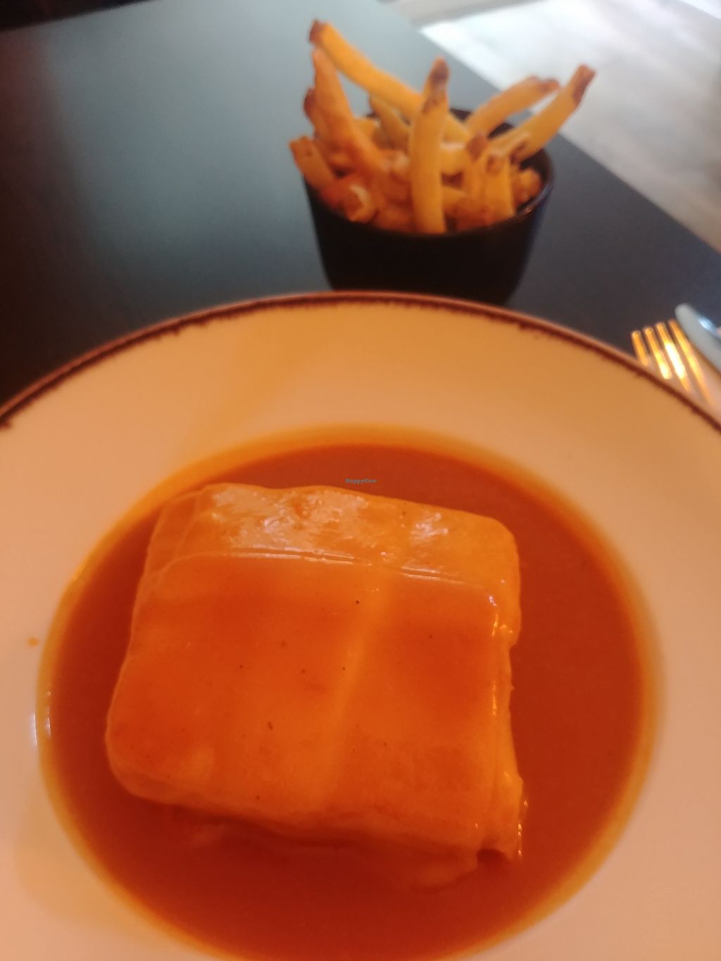 Francesinha (layers of faux meat, bread, cheese)