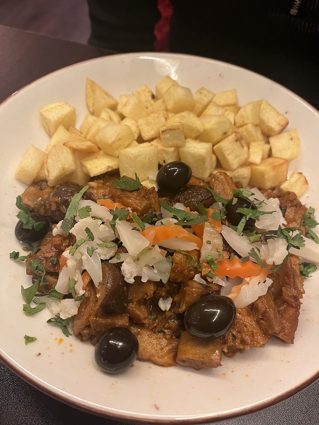 estofado de seitán con papitas fritas