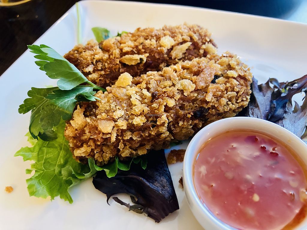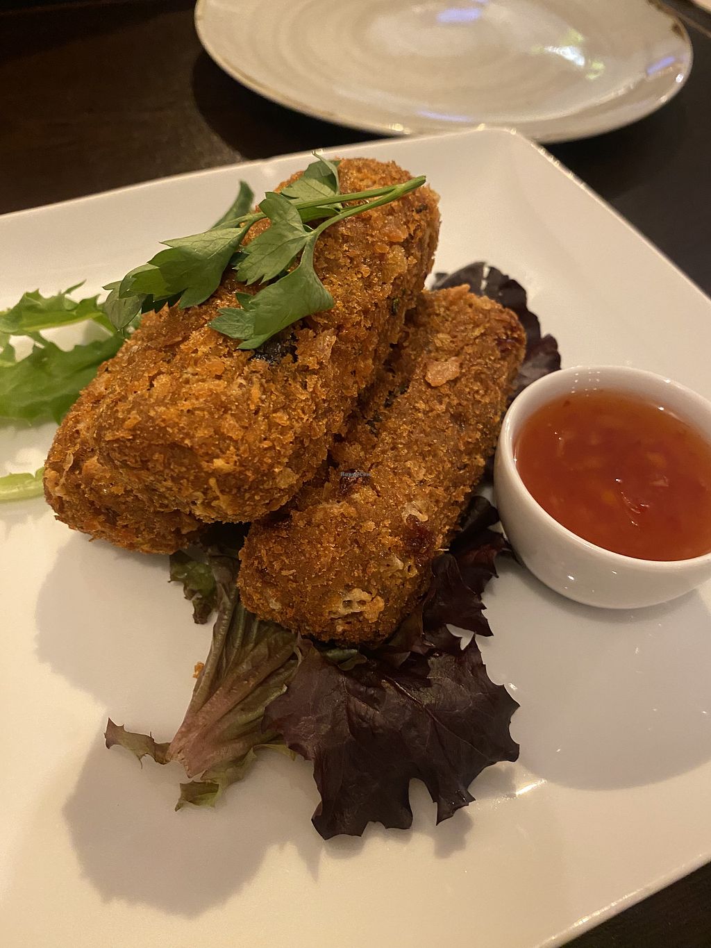 Croquetes de alheira e queijo (tudo vegan) e Asinhas de couve flor