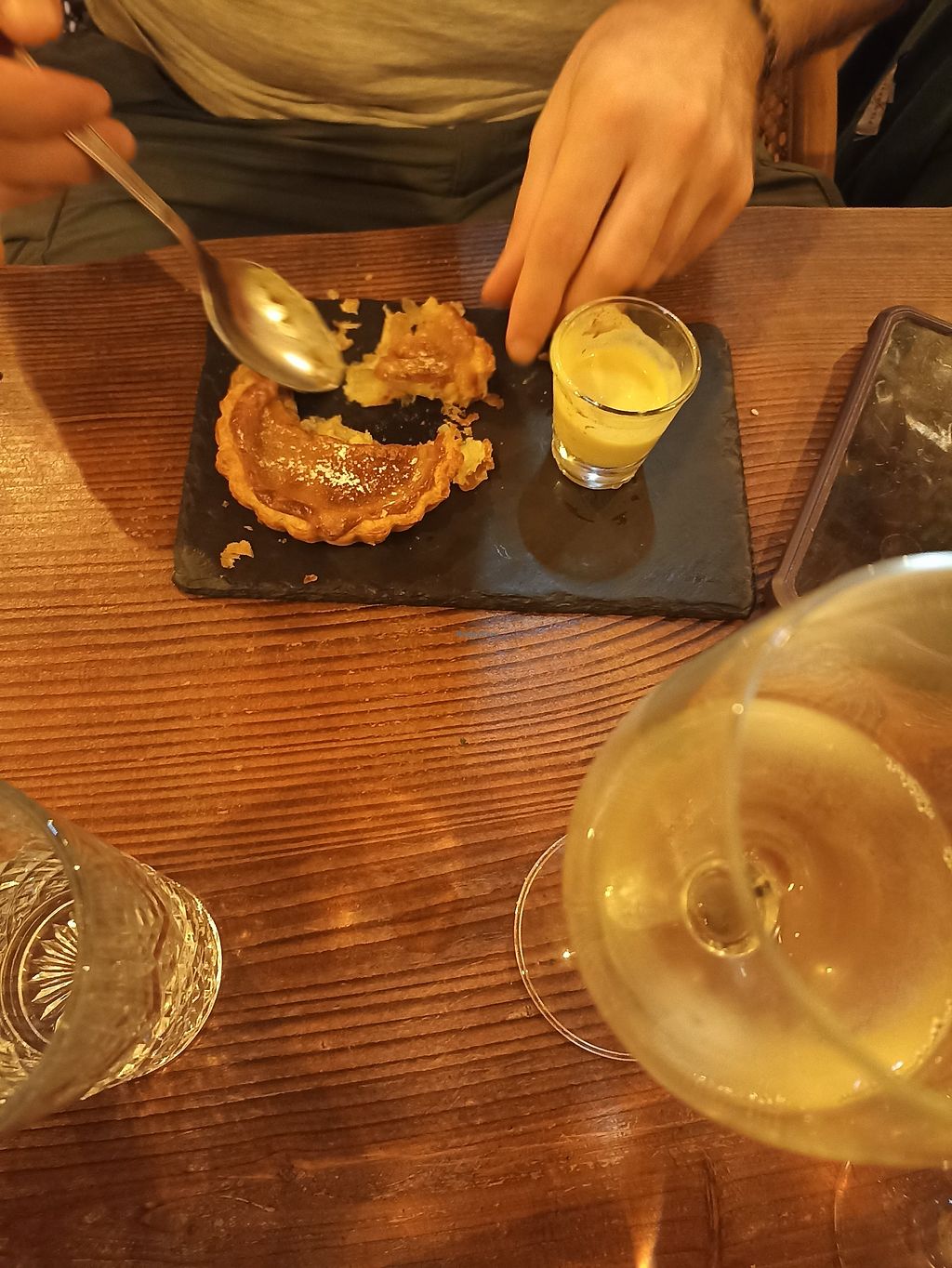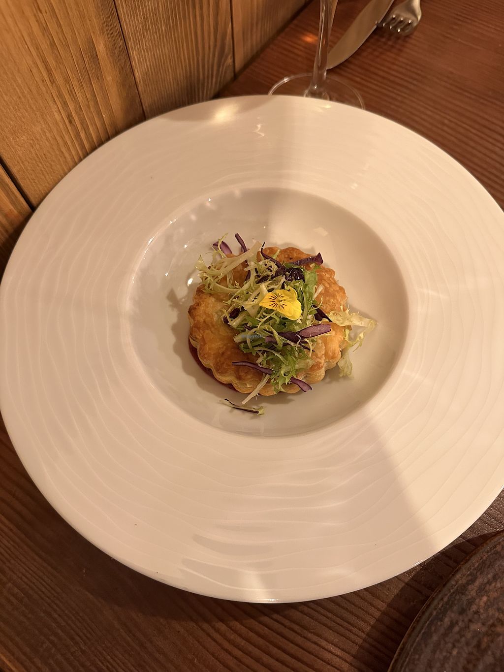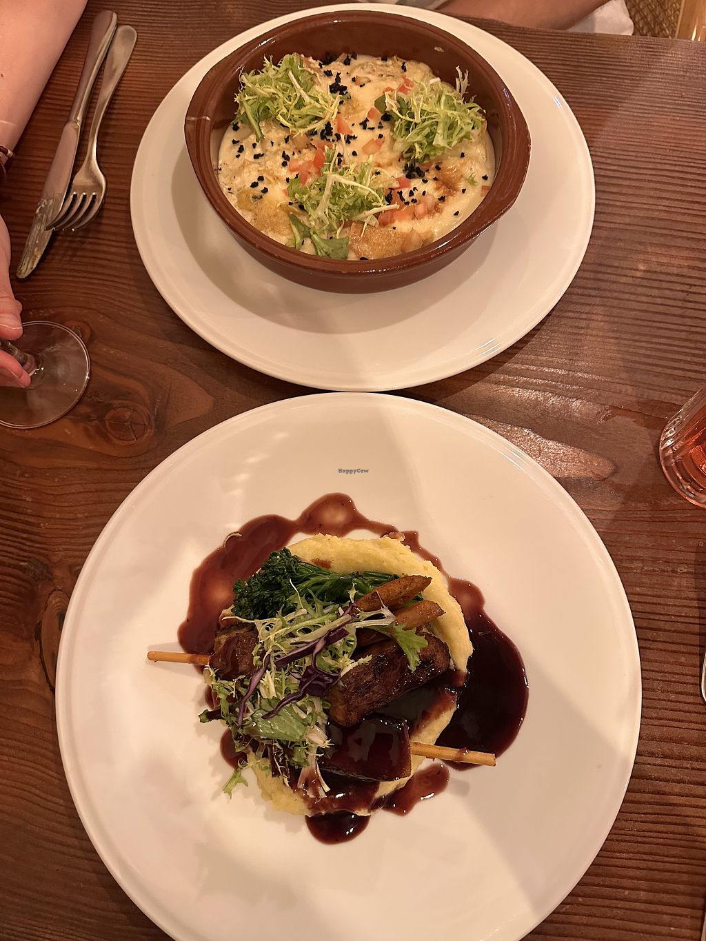 "Scallops" with strawberry chutney (left) and fried cuttlefish (right)…