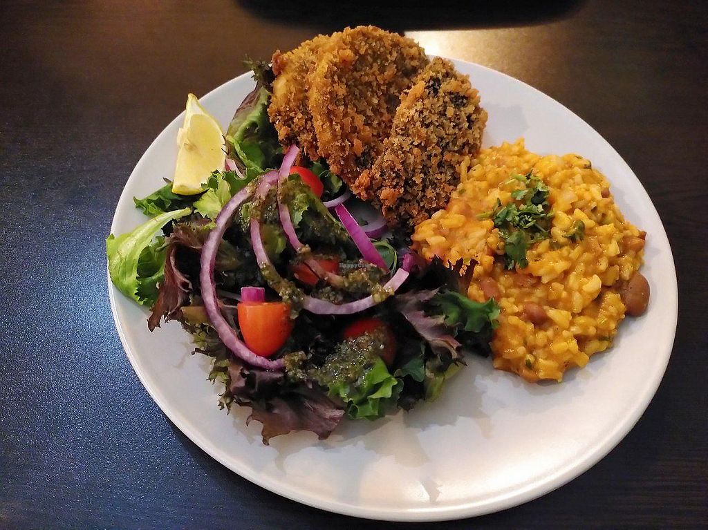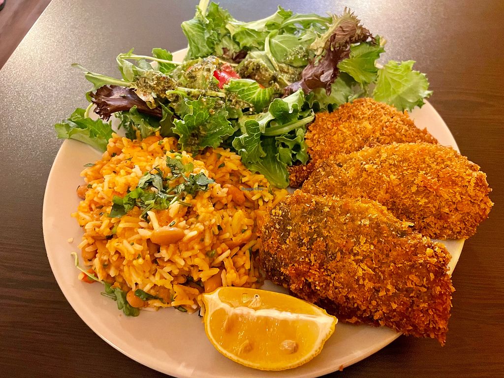 Fried “fish” with Portuguese tomato rice