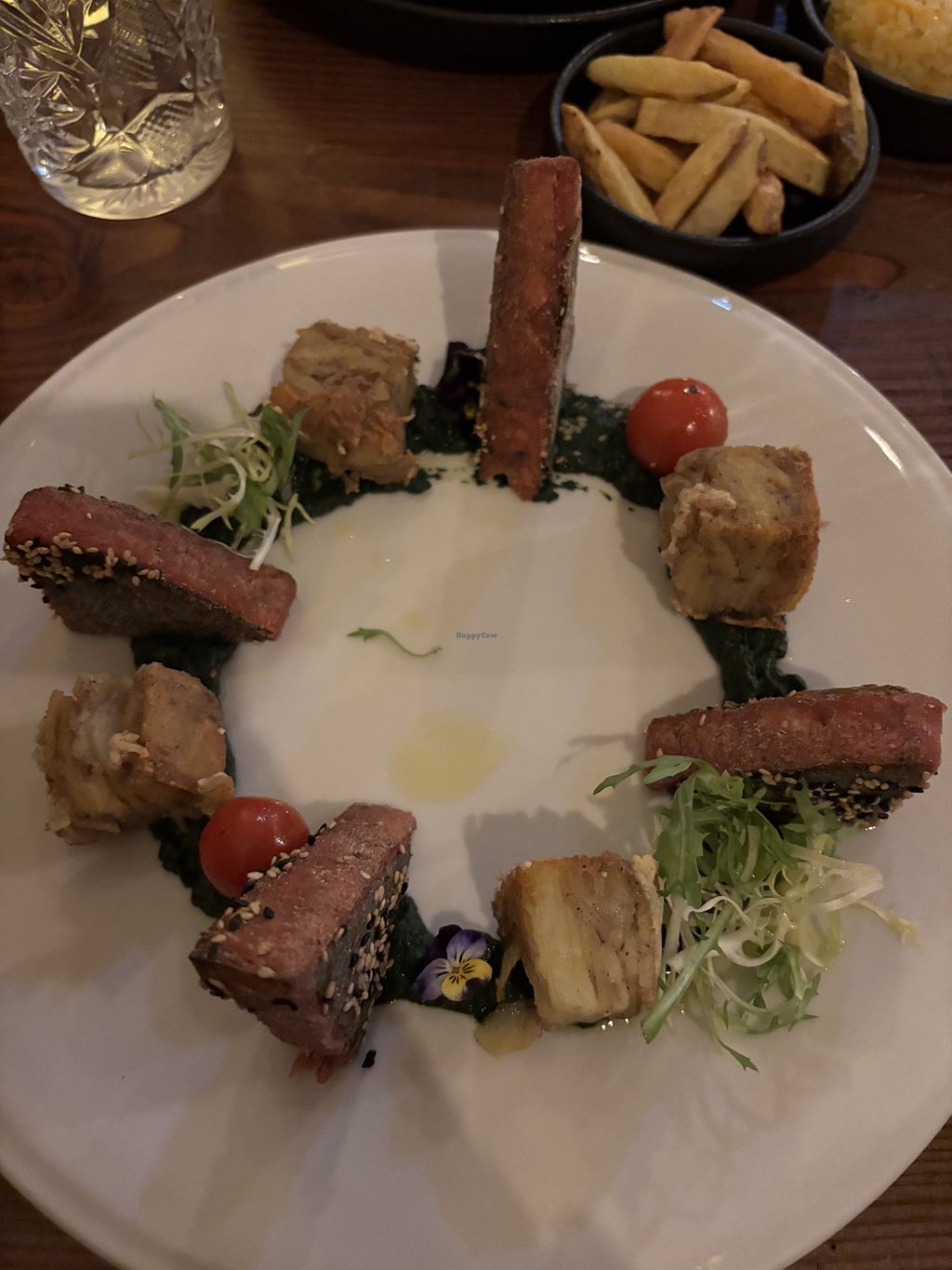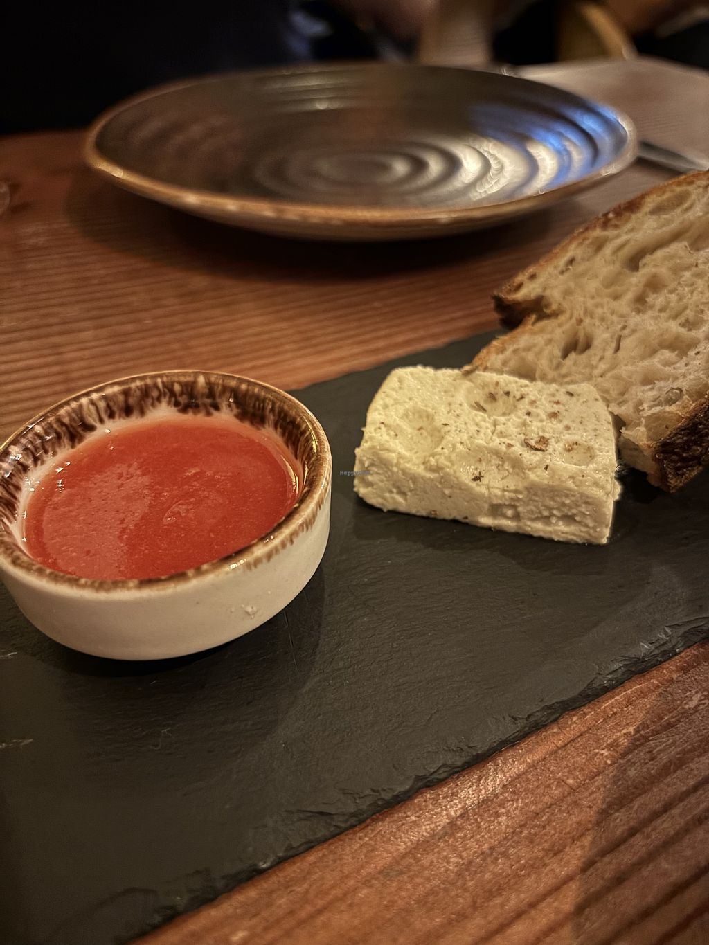Read moreThe food is veganized Portuguese classics. The salmon was especially incredible. My husband found the mustard sauce on the steak a bit heavy. The cheesecake was really cute but came with a shot glass of something that seemed too thin to be a sauce and too bland to be a drink - no one explained its purpose to us, they just plunked it down and walked away.
