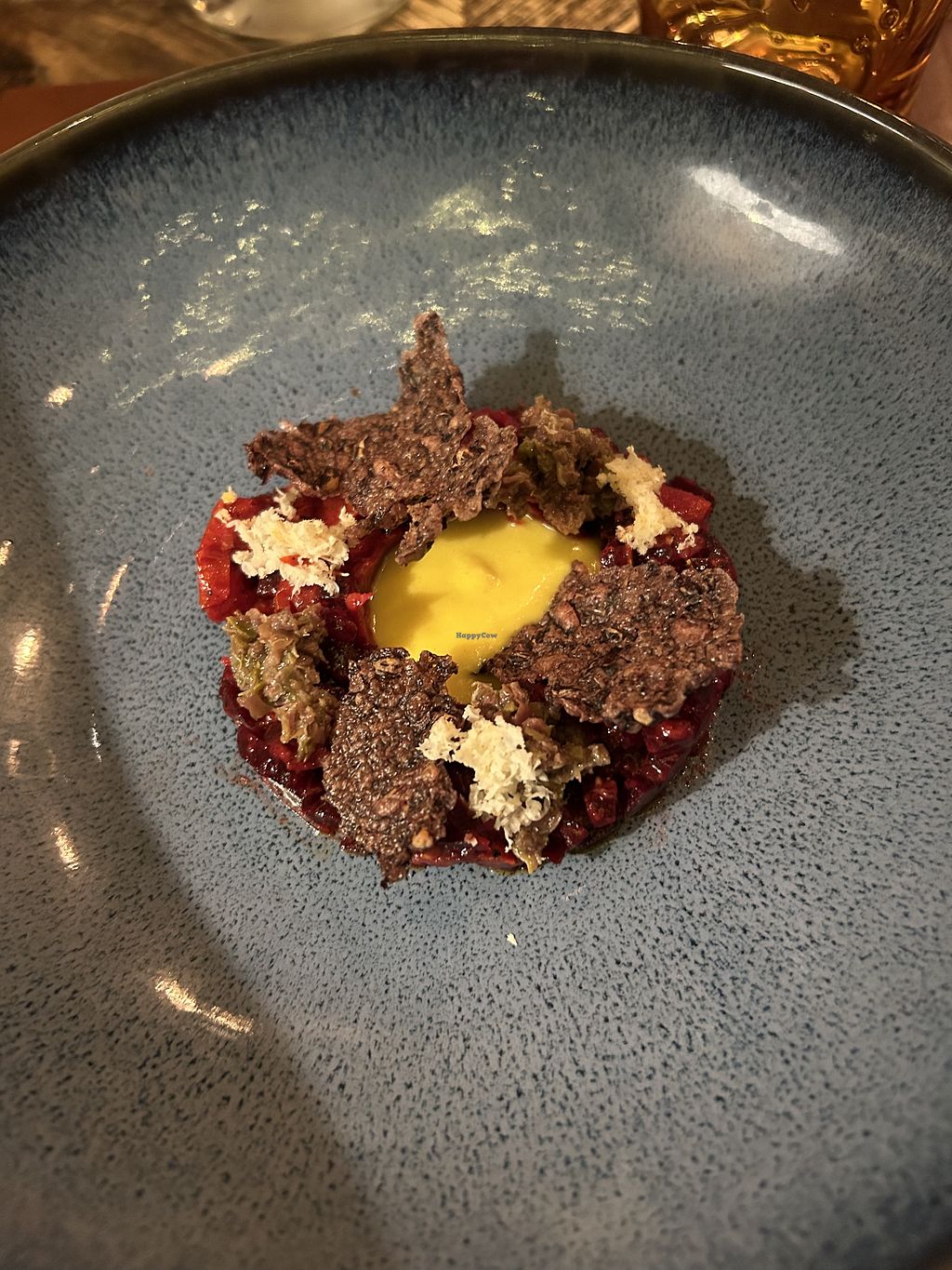 It’s a nice restaurant and the vegan options are clearly labeled on the menu. We ordered the vegetarian tasting menu ‘the garden’ and they veganised everything for us. The food was really tasty!