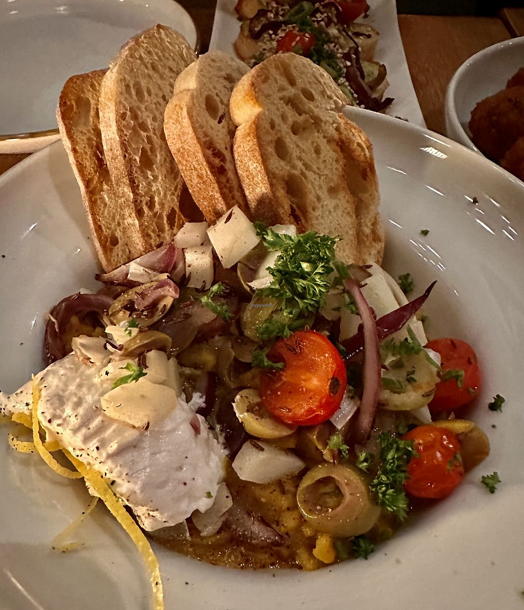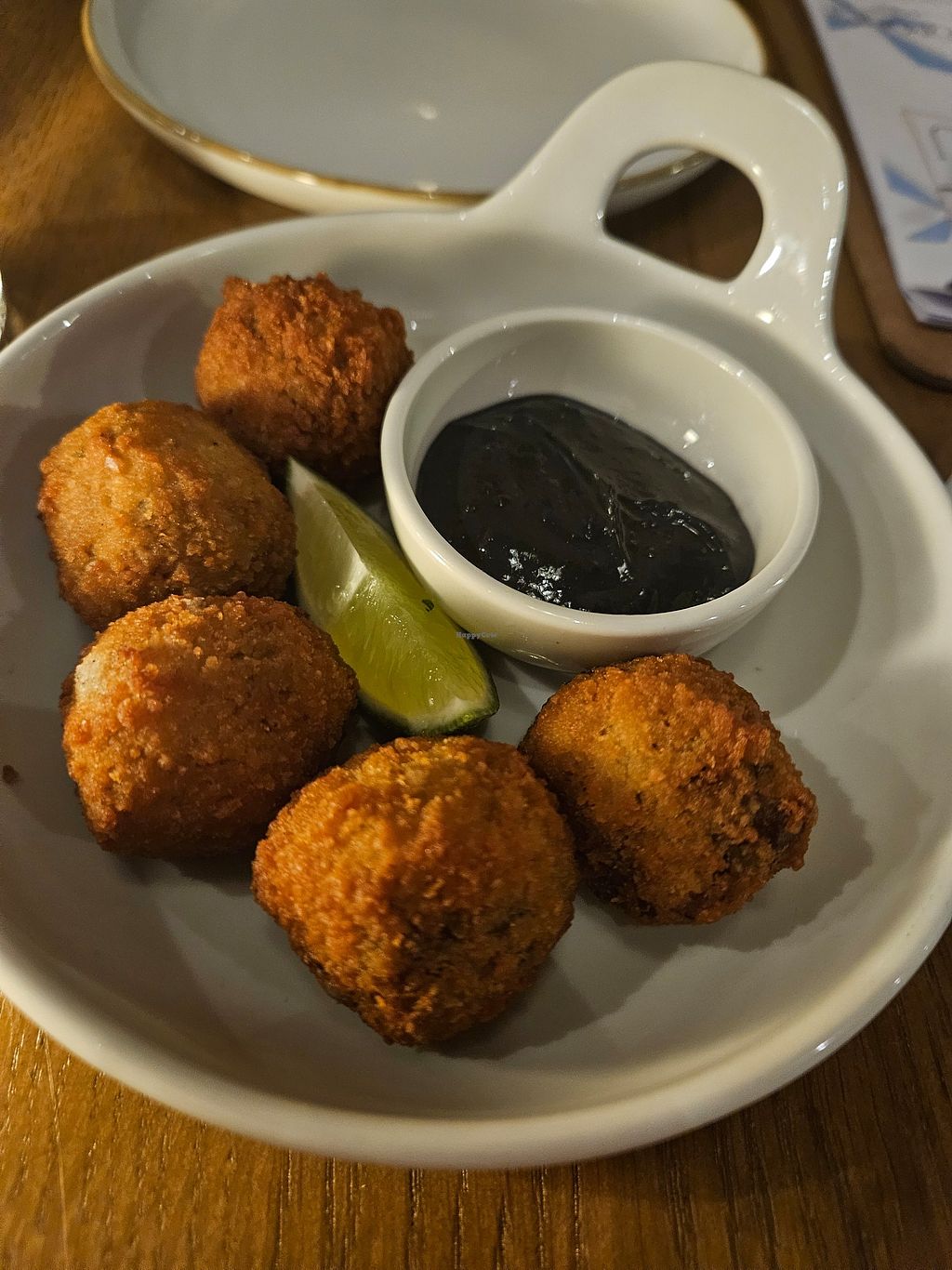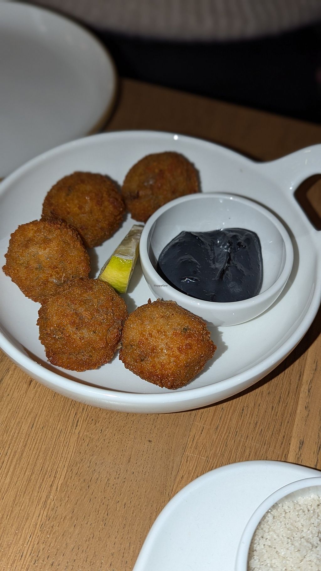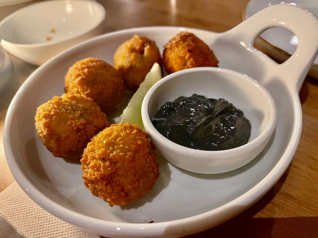 Tapas warm: Oesterzwambitterballetjes Kopje Zwam met emulsie van zwart…
