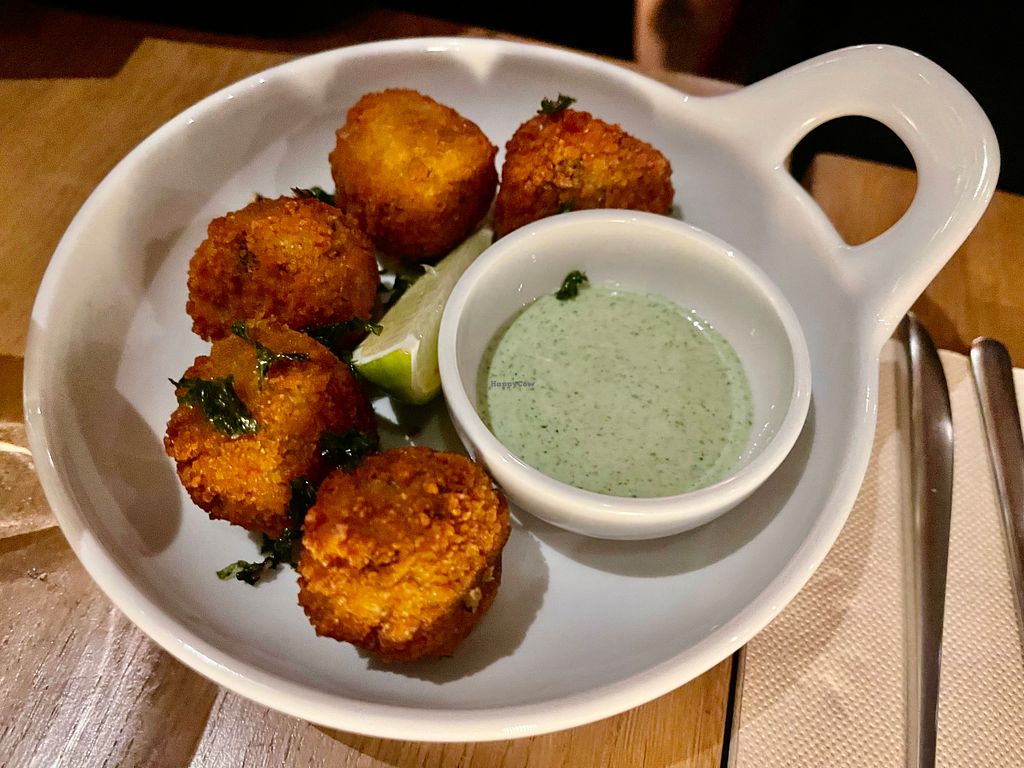 Tapas warm: Nomet wakamekroketjes met frisse soja yoghurt-muntdip € 11…
