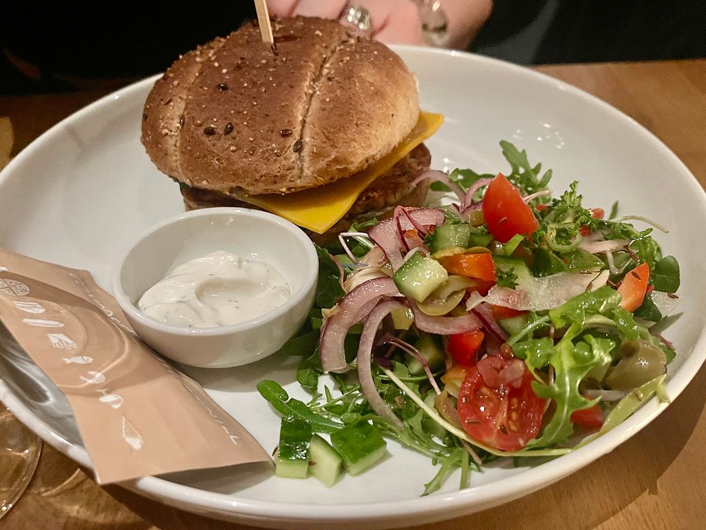 Hoofdgerecht: Oesterzwamburger in een meergranenbroodje met gegrilde g…